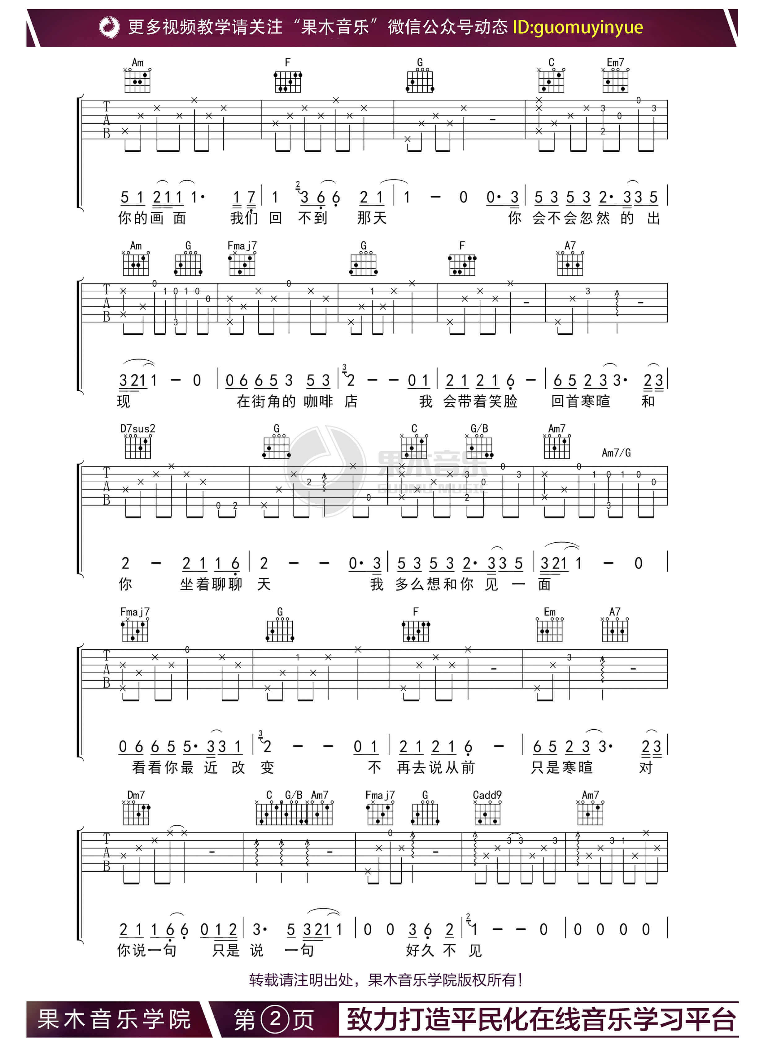 《陈奕迅《好久不见吉他谱》(C调)》内容来自于互联网,不能保证内容的准确性与完整性,仅供学习交流欣赏,请勿用于其它用途,内容版权归原作者及来源网站所有,如有侵犯到您的权益请来信告知,我们将及时删除。