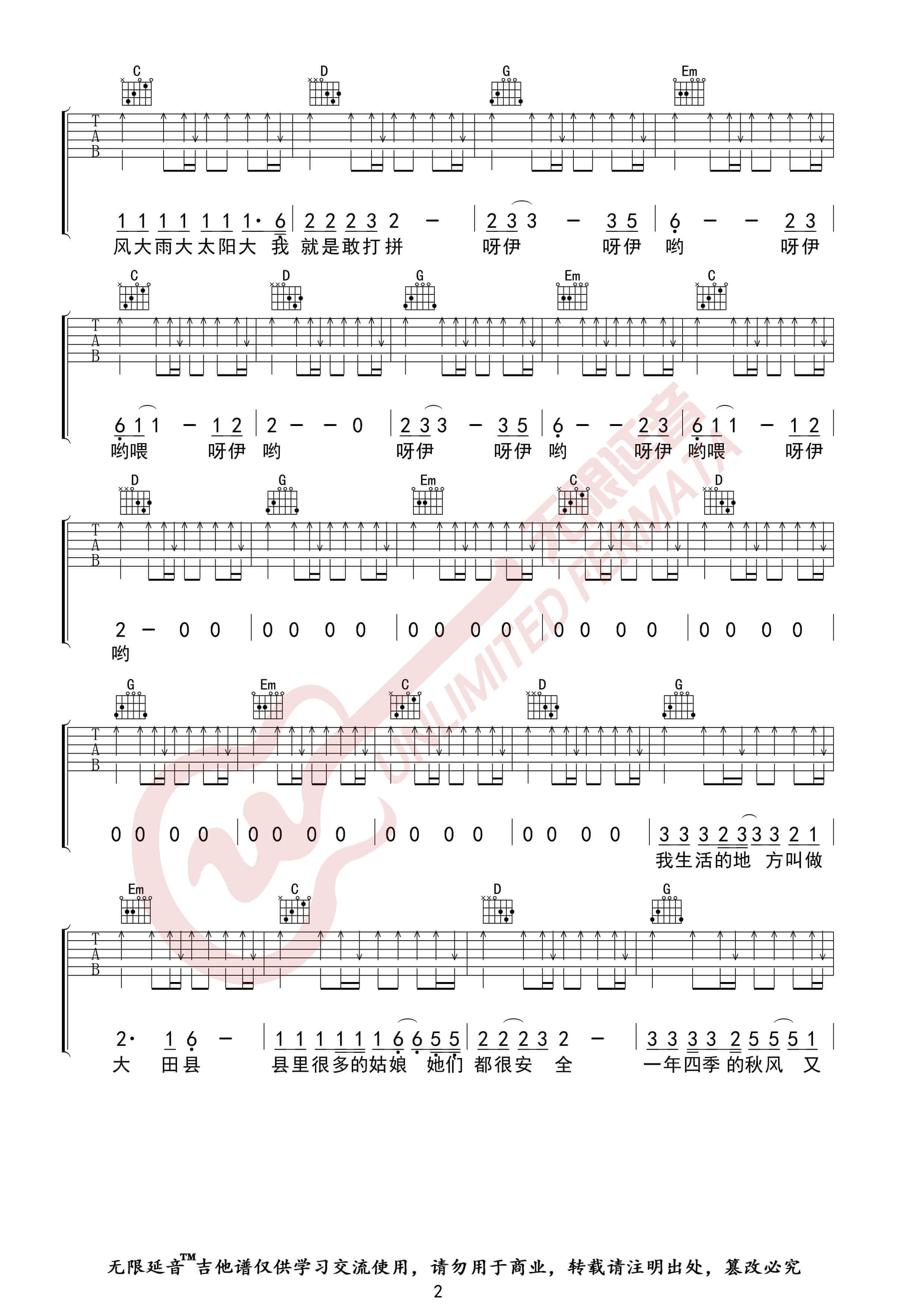 《《大田后生仔吉他谱》(G调)》内容来自于互联网,不能保证内容的准确性与完整性,仅供学习交流欣赏,请勿用于其它用途,内容版权归原作者及来源网站所有,如有侵犯到您的权益请来信告知,我们将及时删除。