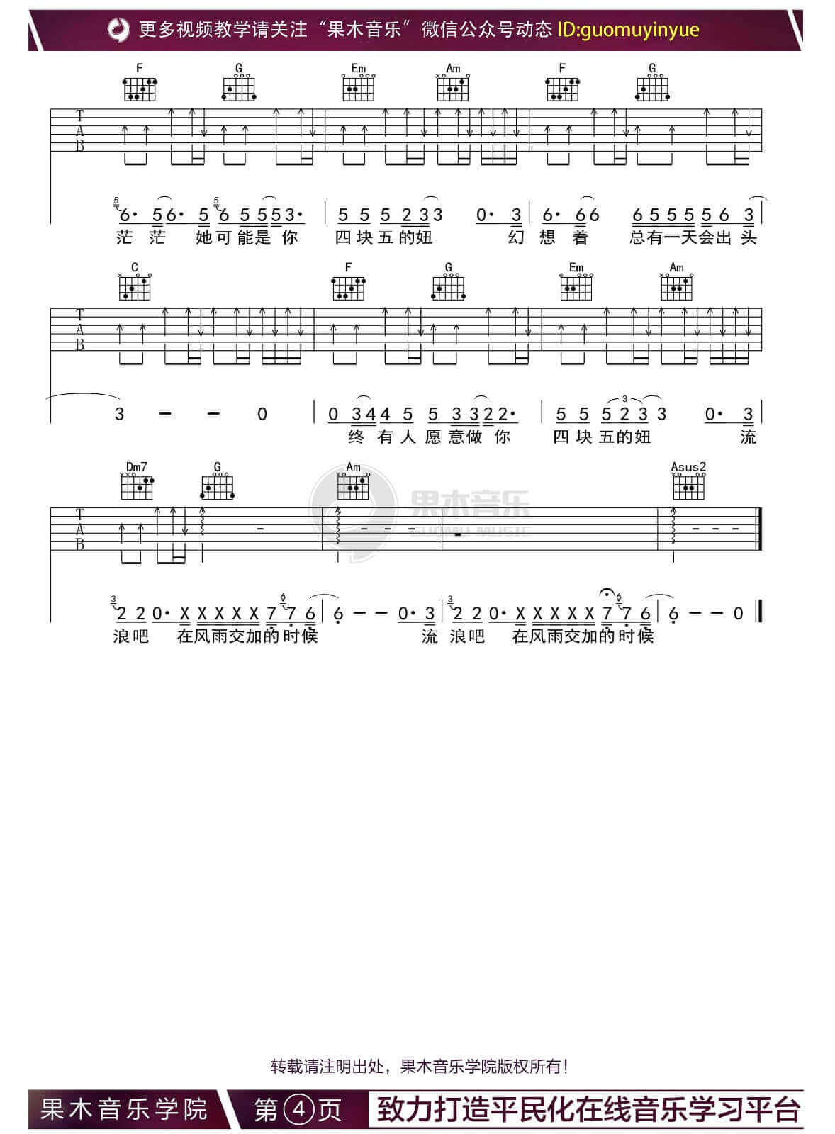 《隔壁老樊《四块五吉他谱》(E调)》内容来自于互联网,不能保证内容的准确性与完整性,仅供学习交流欣赏,请勿用于其它用途,内容版权归原作者及来源网站所有,如有侵犯到您的权益请来信告知,我们将及时删除。