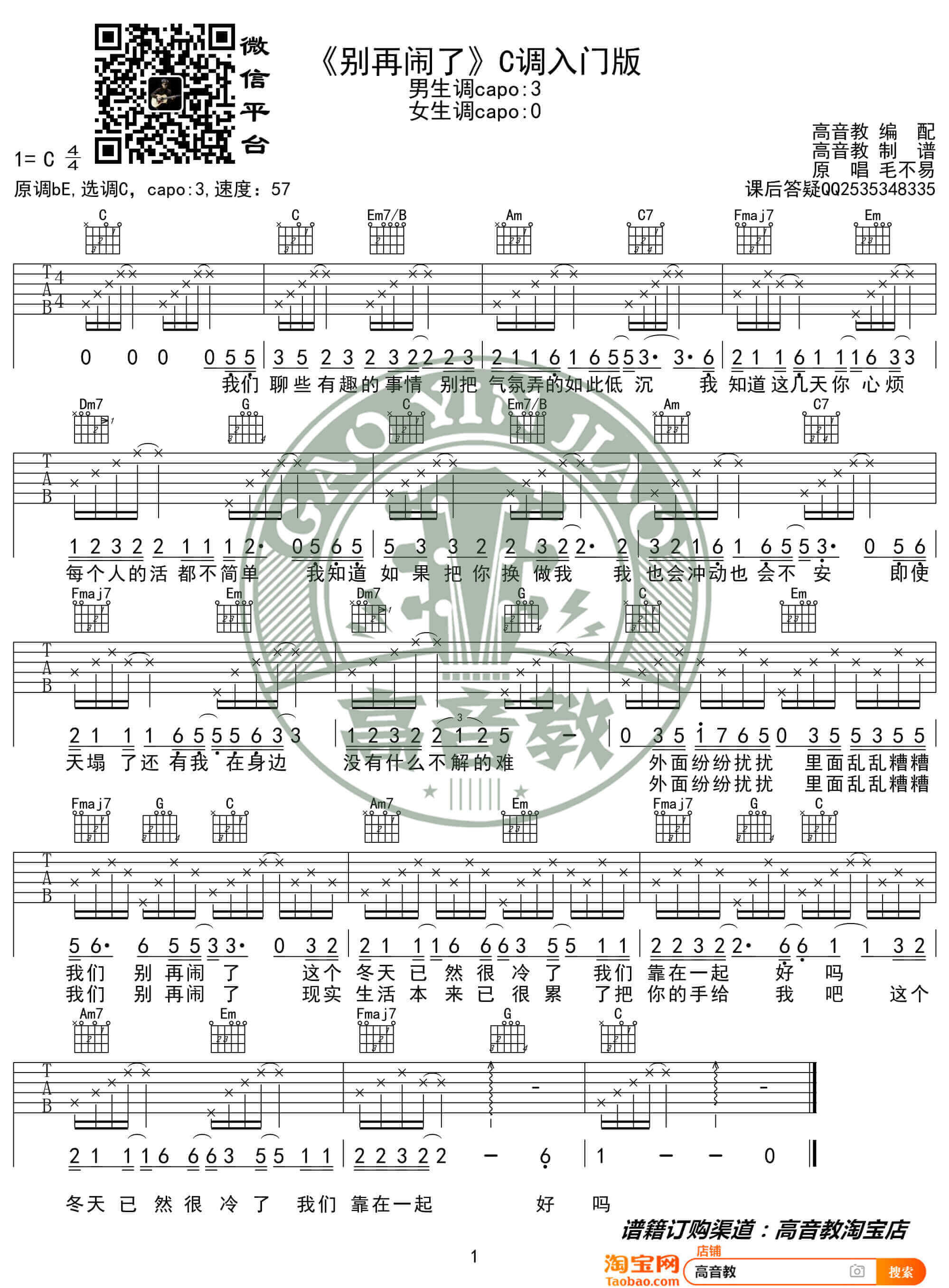 《毛不易《别再闹了吉他谱》(C调)》内容来自于互联网,不能保证内容的准确性与完整性,仅供学习交流欣赏,请勿用于其它用途,内容版权归原作者及来源网站所有,如有侵犯到您的权益请来信告知,我们将及时删除。