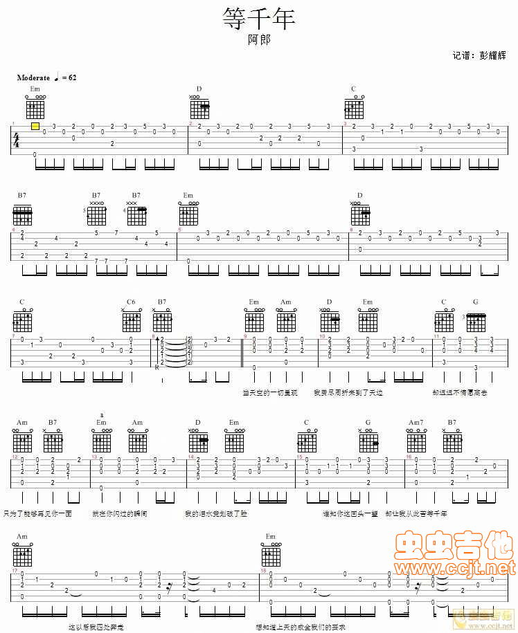 《虫虫《等千年吉他谱》(C调)》内容来自于互联网,不能保证内容的准确性与完整性,仅供学习交流欣赏,请勿用于其它用途,内容版权归原作者及来源网站所有,如有侵犯到您的权益请来信告知,我们将及时删除。
