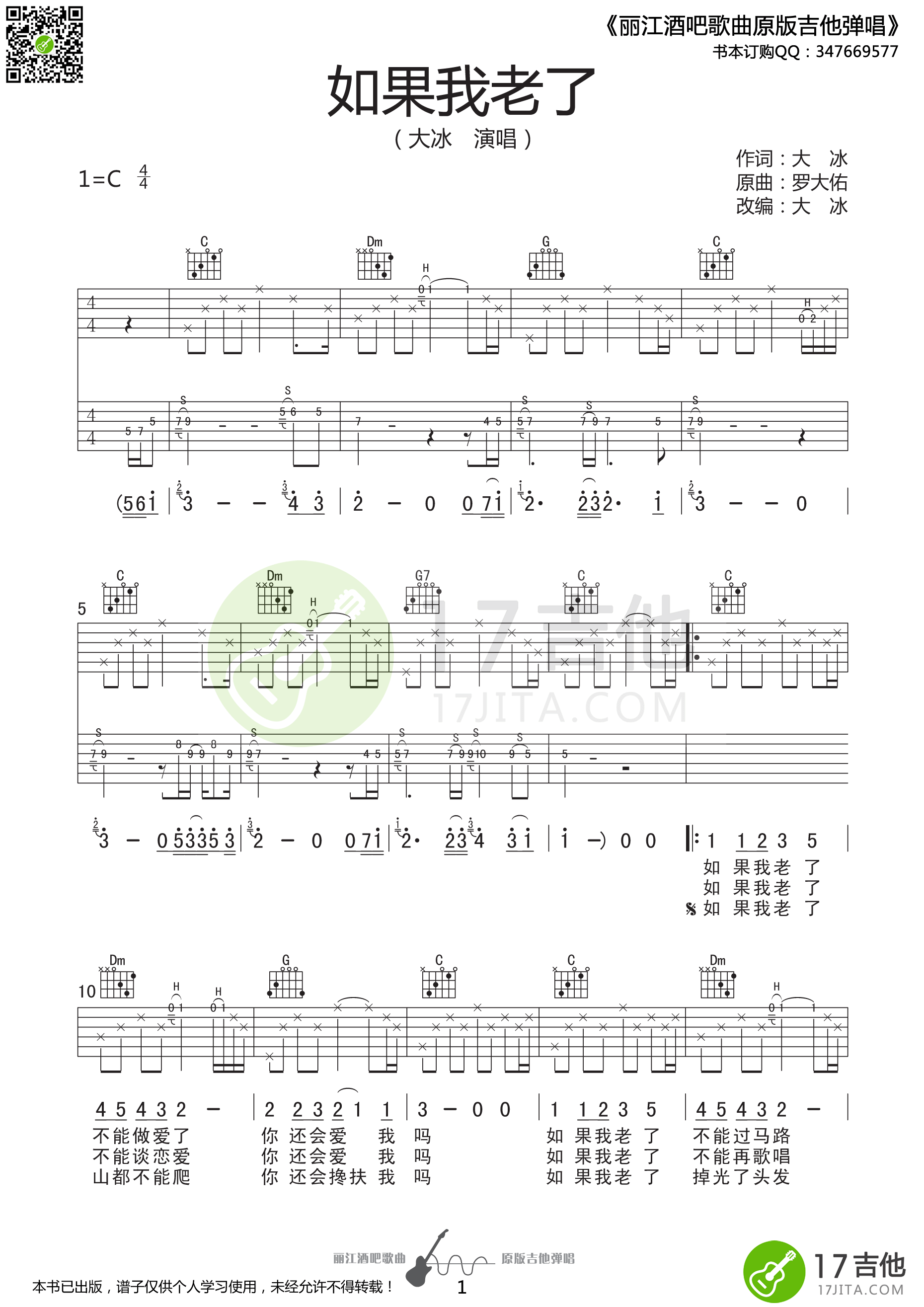 《《如果我老了吉他谱》(C调)》内容来自于互联网,不能保证内容的准确性与完整性,仅供学习交流欣赏,请勿用于其它用途,内容版权归原作者及来源网站所有,如有侵犯到您的权益请来信告知,我们将及时删除。