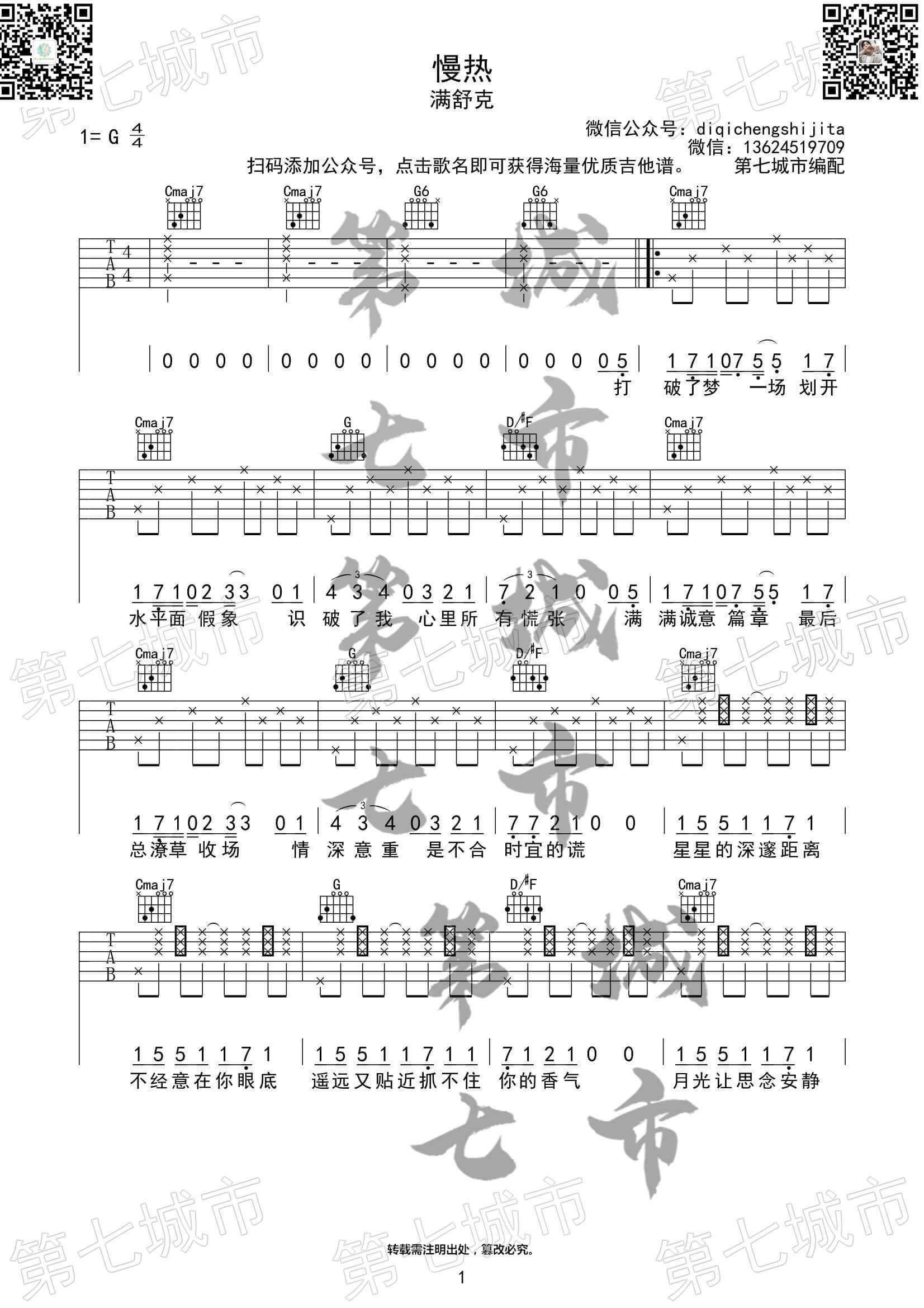 《满舒克《慢热吉他谱》(G调)》内容来自于互联网,不能保证内容的准确性与完整性,仅供学习交流欣赏,请勿用于其它用途,内容版权归原作者及来源网站所有,如有侵犯到您的权益请来信告知,我们将及时删除。