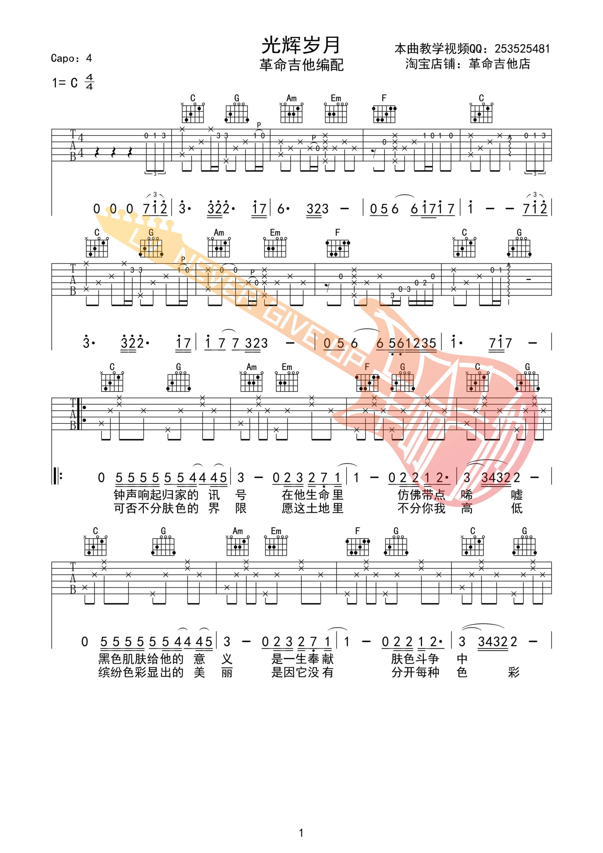 《Beyond《光辉岁月吉他谱》(C调)》内容来自于互联网,不能保证内容的准确性与完整性,仅供学习交流欣赏,请勿用于其它用途,内容版权归原作者及来源网站所有,如有侵犯到您的权益请来信告知,我们将及时删除。