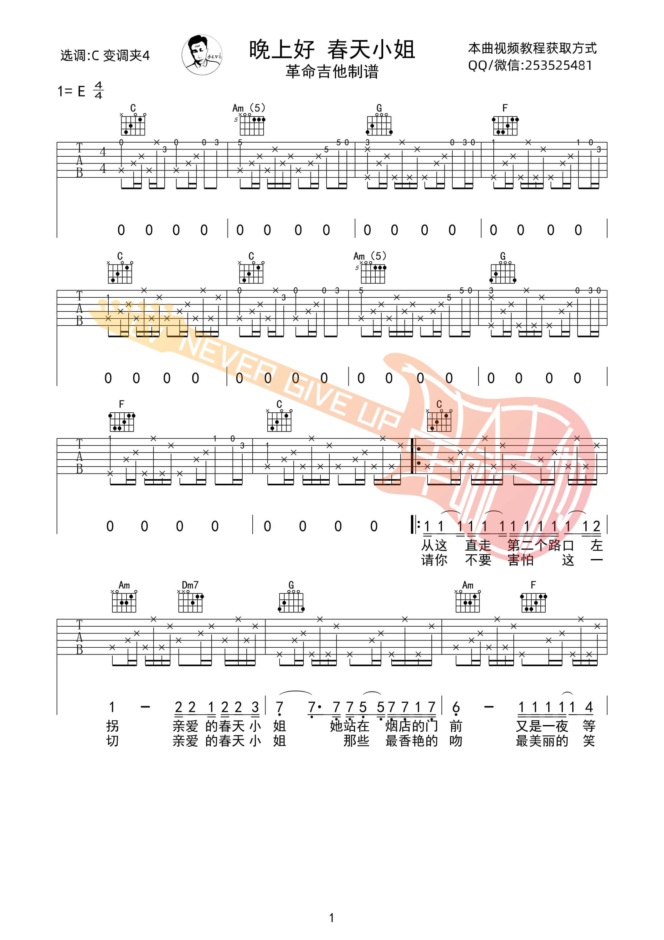 《五条人《晚上好春天小姐吉他谱》(E调)》内容来自于互联网,不能保证内容的准确性与完整性,仅供学习交流欣赏,请勿用于其它用途,内容版权归原作者及来源网站所有,如有侵犯到您的权益请来信告知,我们将及时删除。
