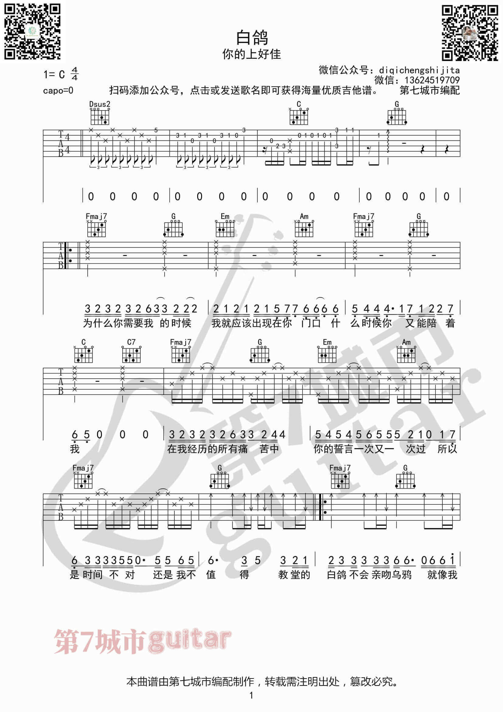 《你的上好佳《白鸽吉他谱》》内容来自于互联网,不能保证内容的准确性与完整性,仅供学习交流欣赏,请勿用于其它用途,内容版权归原作者及来源网站所有,如有侵犯到您的权益请来信告知,我们将及时删除。