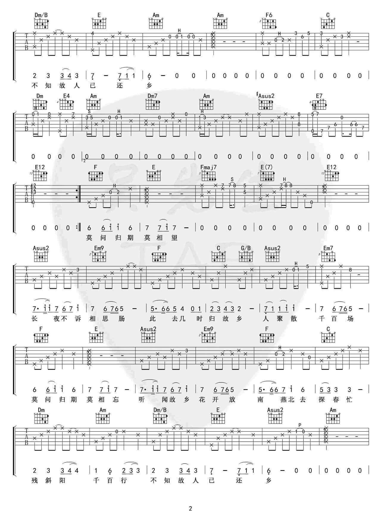 《倪健《欲还乡吉他谱》(C调)》内容来自于互联网,不能保证内容的准确性与完整性,仅供学习交流欣赏,请勿用于其它用途,内容版权归原作者及来源网站所有,如有侵犯到您的权益请来信告知,我们将及时删除。
