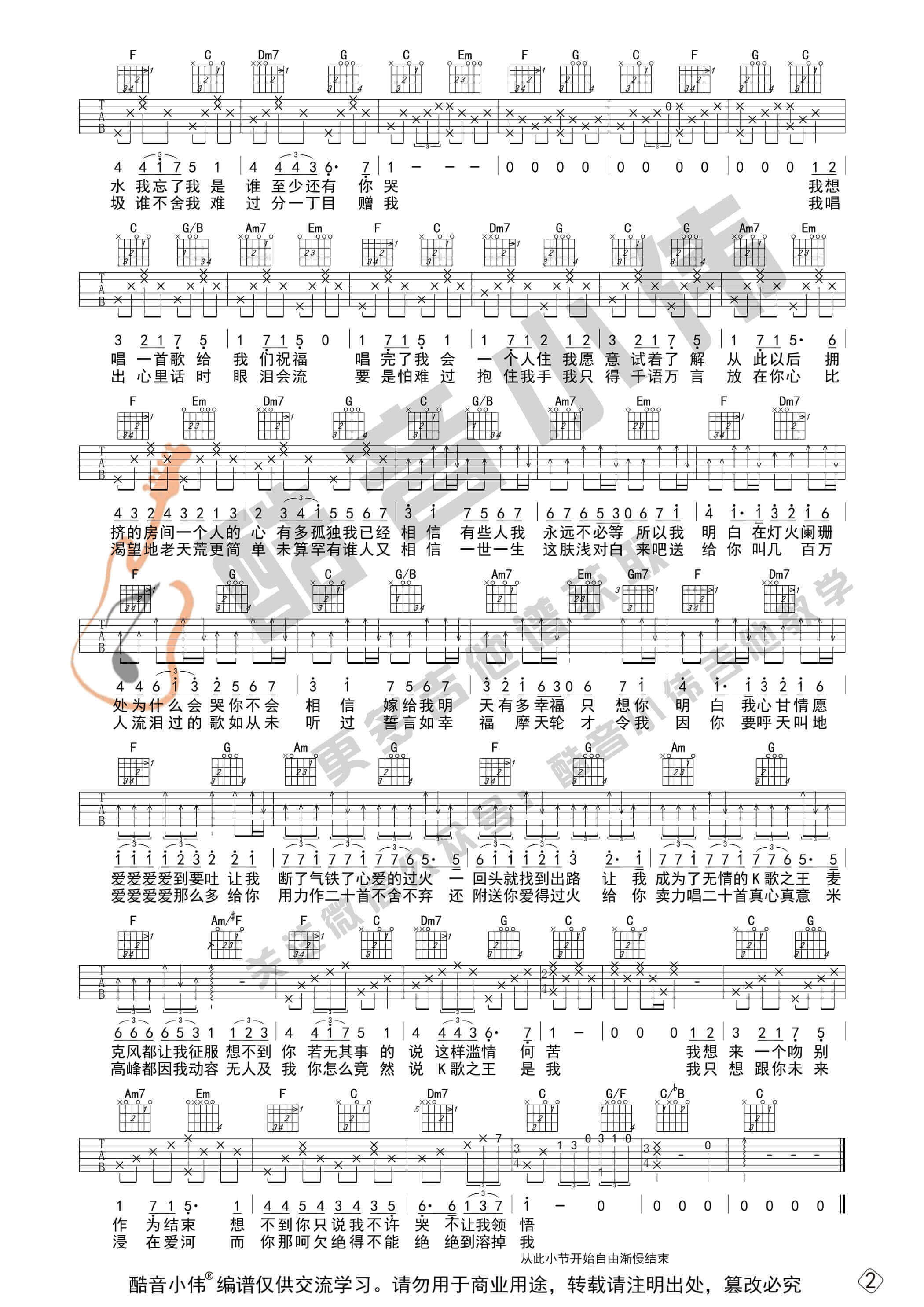 《陈奕迅《K歌之王吉他谱》(C调)》内容来自于互联网,不能保证内容的准确性与完整性,仅供学习交流欣赏,请勿用于其它用途,内容版权归原作者及来源网站所有,如有侵犯到您的权益请来信告知,我们将及时删除。