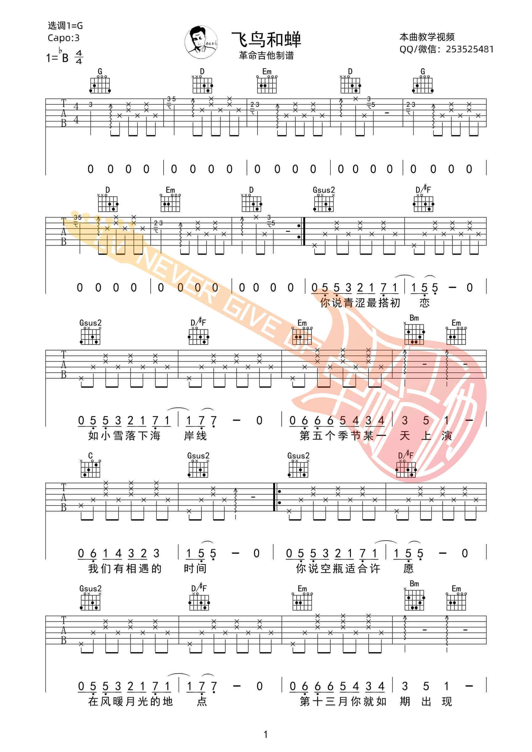 《任然《飞鸟和蝉吉他谱》(G调)》内容来自于互联网,不能保证内容的准确性与完整性,仅供学习交流欣赏,请勿用于其它用途,内容版权归原作者及来源网站所有,如有侵犯到您的权益请来信告知,我们将及时删除。