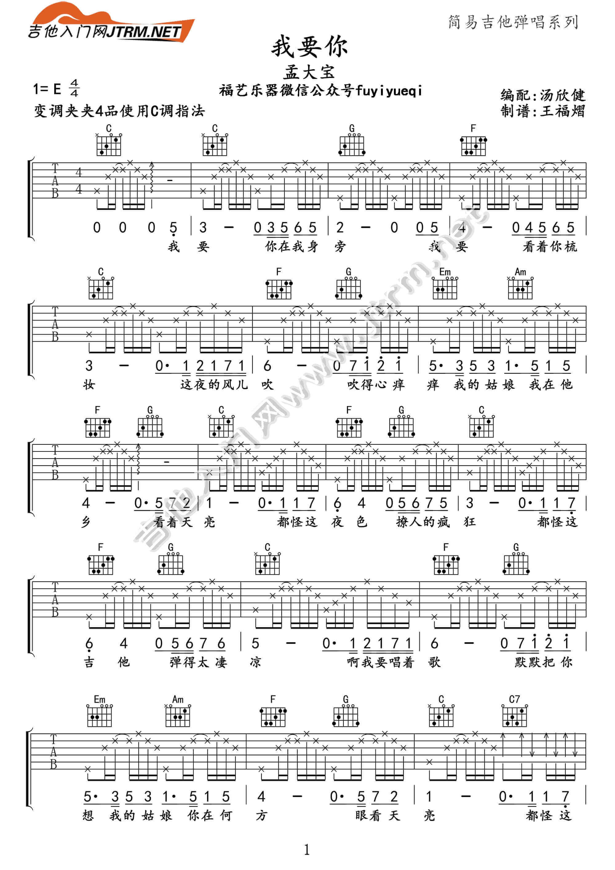 《《我要你吉他谱》(C调)》内容来自于互联网,不能保证内容的准确性与完整性,仅供学习交流欣赏,请勿用于其它用途,内容版权归原作者及来源网站所有,如有侵犯到您的权益请来信告知,我们将及时删除。
