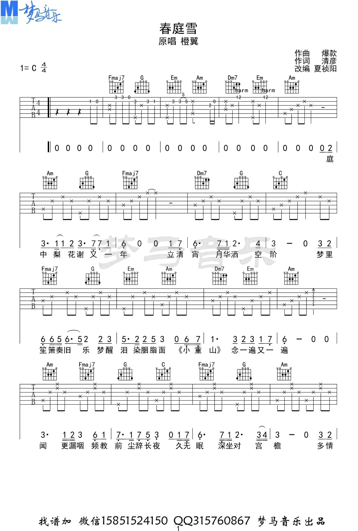 《冰幽《春庭雪吉他谱》》内容来自于互联网,不能保证内容的准确性与完整性,仅供学习交流欣赏,请勿用于其它用途,内容版权归原作者及来源网站所有,如有侵犯到您的权益请来信告知,我们将及时删除。