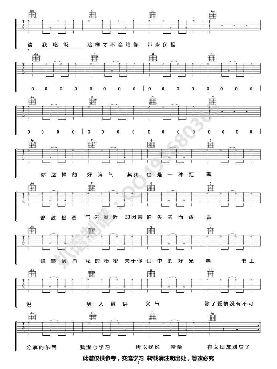 《阿肆《有女朋友别忘了请我吃饭吉他谱》(C调)》内容来自于互联网,不能保证内容的准确性与完整性,仅供学习交流欣赏,请勿用于其它用途,内容版权归原作者及来源网站所有,如有侵犯到您的权益请来信告知,我们将及时删除。