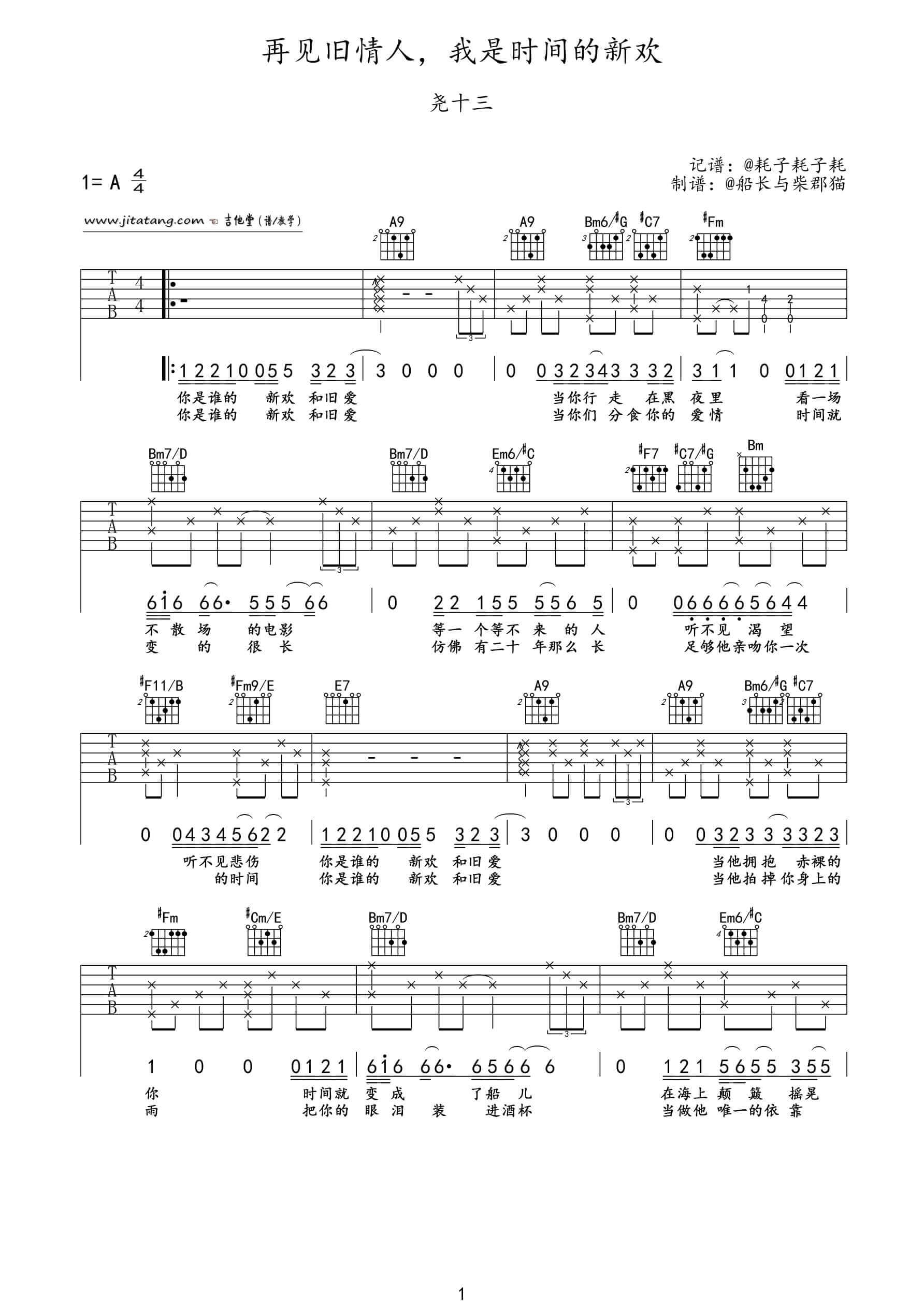 《尧十三《再见旧情人我是时间的新欢吉他谱》(A调)》内容来自于互联网,不能保证内容的准确性与完整性,仅供学习交流欣赏,请勿用于其它用途,内容版权归原作者及来源网站所有,如有侵犯到您的权益请来信告知,我们将及时删除。