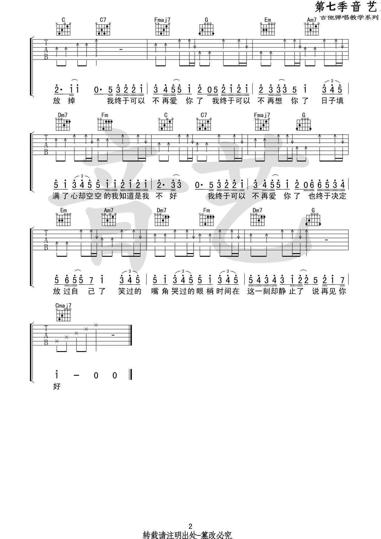 《金玟岐《再见你好吉他谱》(C调)》内容来自于互联网,不能保证内容的准确性与完整性,仅供学习交流欣赏,请勿用于其它用途,内容版权归原作者及来源网站所有,如有侵犯到您的权益请来信告知,我们将及时删除。