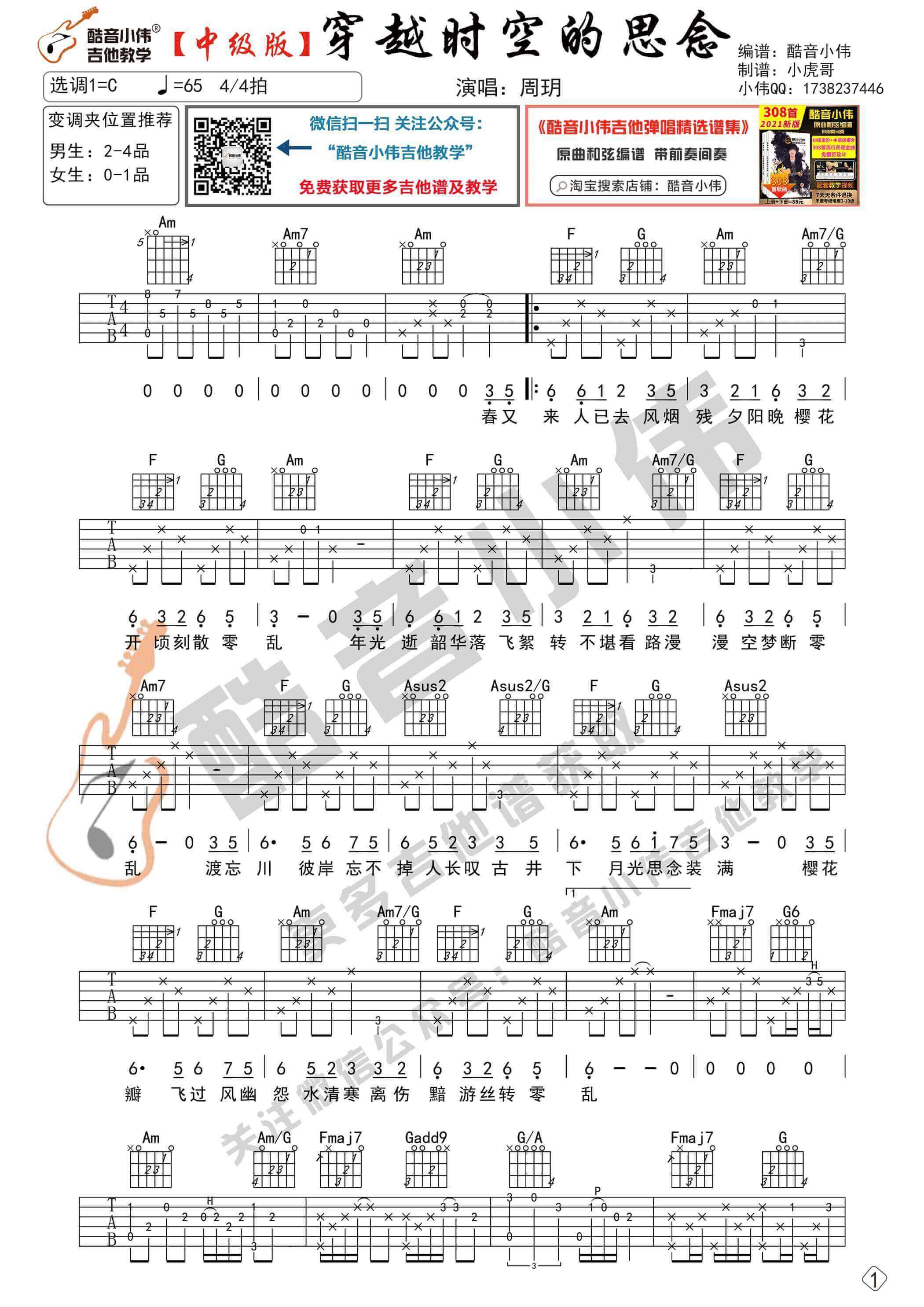 《周玥《穿越时空的思念吉他谱》(C调)》内容来自于互联网,不能保证内容的准确性与完整性,仅供学习交流欣赏,请勿用于其它用途,内容版权归原作者及来源网站所有,如有侵犯到您的权益请来信告知,我们将及时删除。