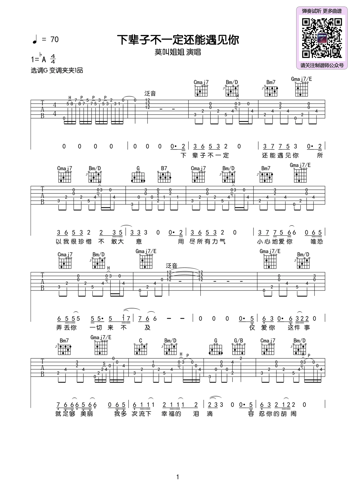 《莫叫姐姐《下辈子不一定还能遇见你吉他谱》(G调)》内容来自于互联网,不能保证内容的准确性与完整性,仅供学习交流欣赏,请勿用于其它用途,内容版权归原作者及来源网站所有,如有侵犯到您的权益请来信告知,我们将及时删除。