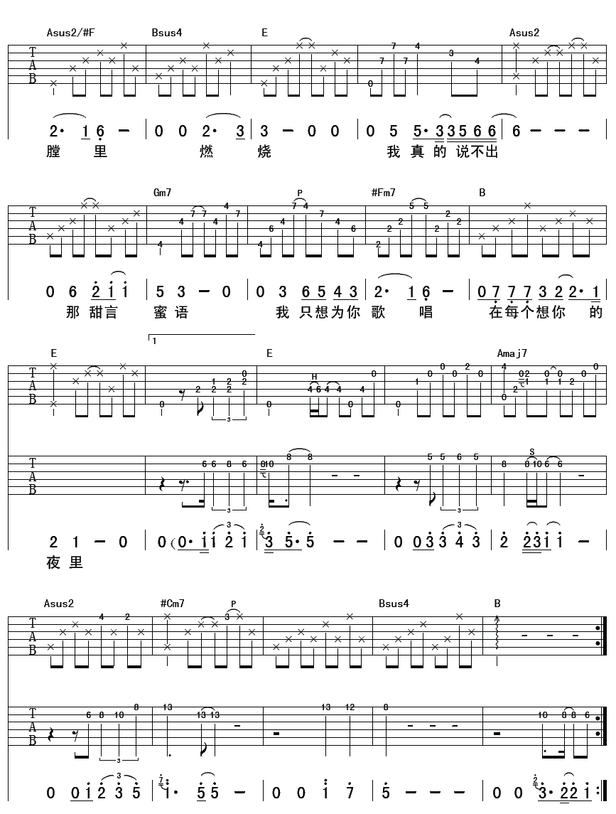 《李健《在每个想你的夜晚吉他谱》(F调)》内容来自于互联网,不能保证内容的准确性与完整性,仅供学习交流欣赏,请勿用于其它用途,内容版权归原作者及来源网站所有,如有侵犯到您的权益请来信告知,我们将及时删除。