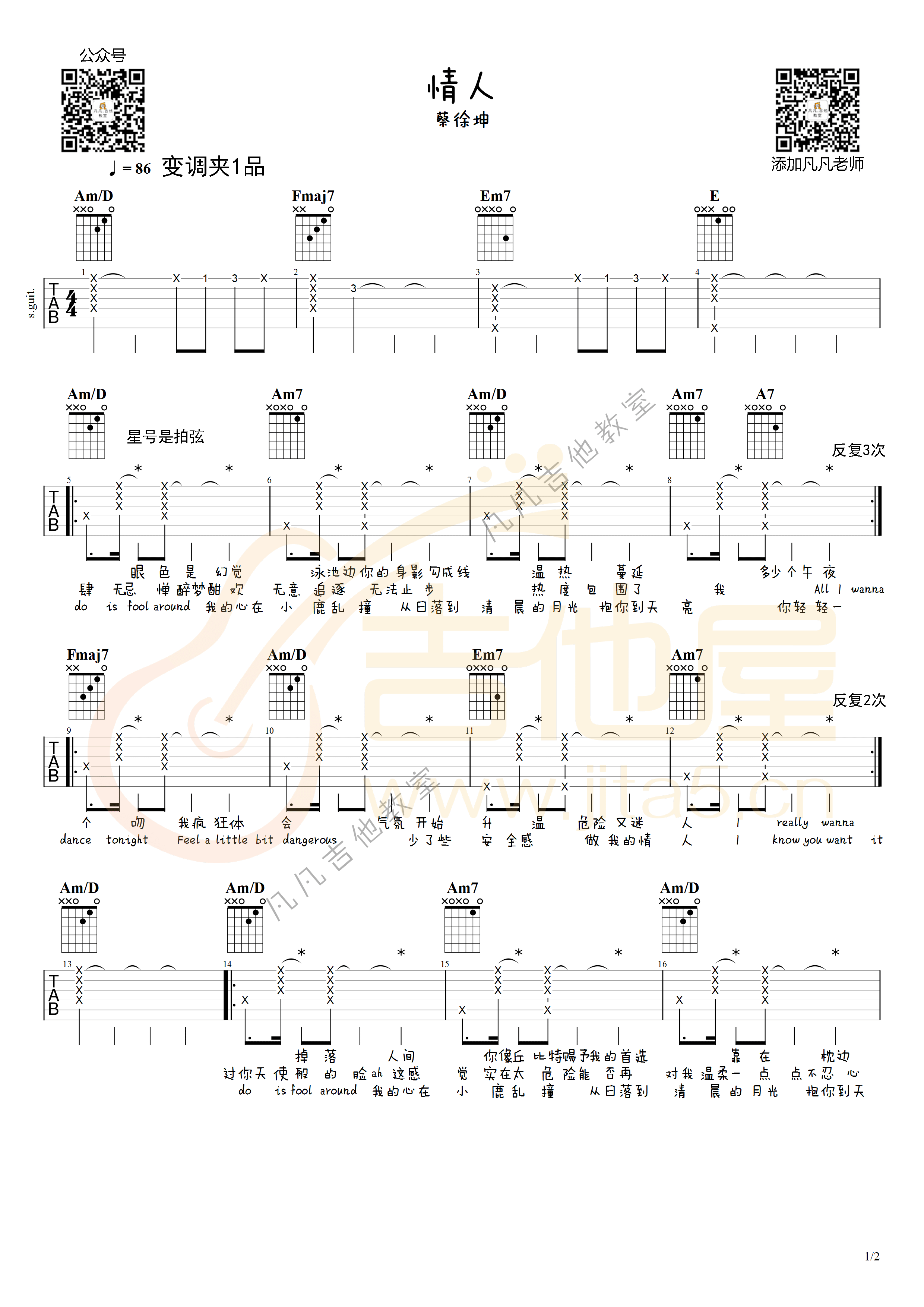 《蔡徐坤《情人吉他谱》(C调)》内容来自于互联网,不能保证内容的准确性与完整性,仅供学习交流欣赏,请勿用于其它用途,内容版权归原作者及来源网站所有,如有侵犯到您的权益请来信告知,我们将及时删除。
