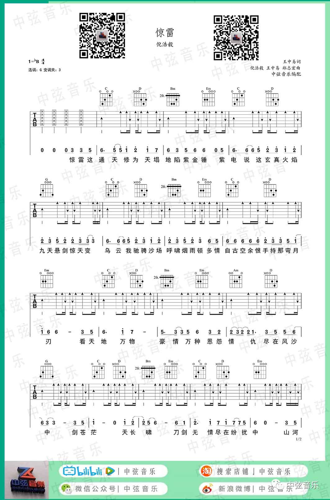 《倪浩毅《惊雷吉他谱》(G调)》内容来自于互联网,不能保证内容的准确性与完整性,仅供学习交流欣赏,请勿用于其它用途,内容版权归原作者及来源网站所有,如有侵犯到您的权益请来信告知,我们将及时删除。