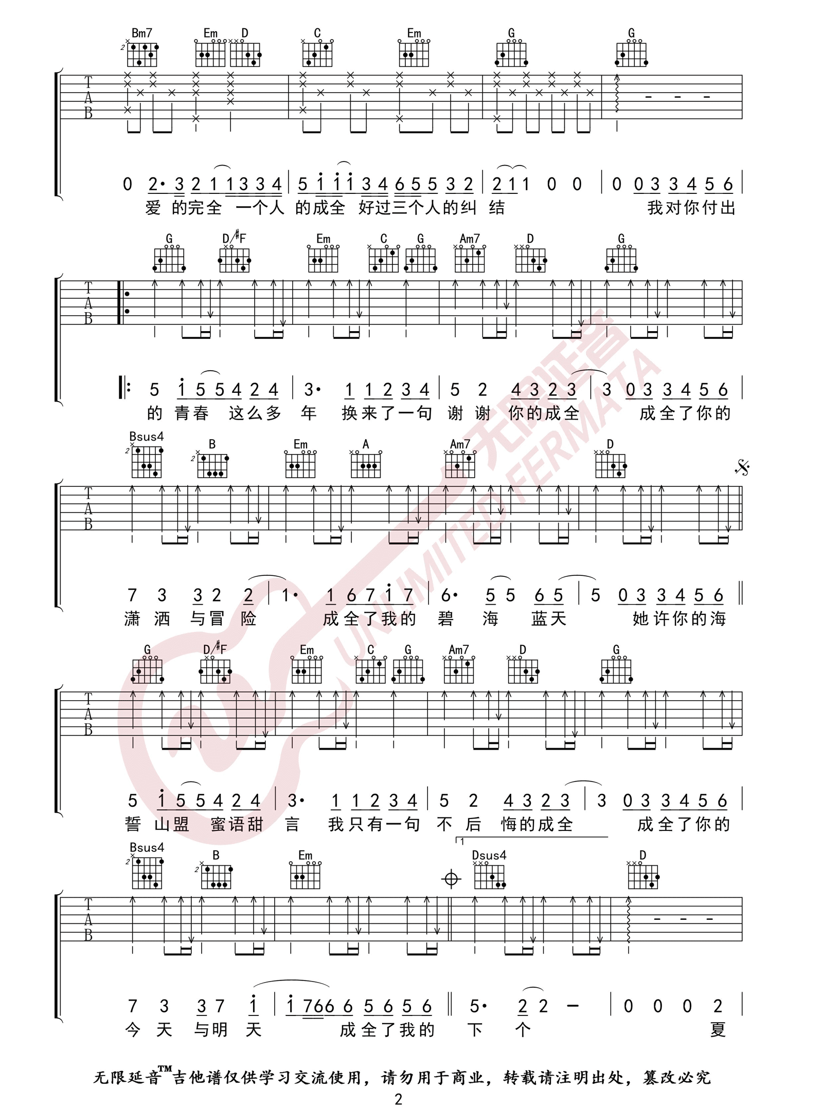 《林宥嘉《成全吉他谱》(G调)》内容来自于互联网,不能保证内容的准确性与完整性,仅供学习交流欣赏,请勿用于其它用途,内容版权归原作者及来源网站所有,如有侵犯到您的权益请来信告知,我们将及时删除。
