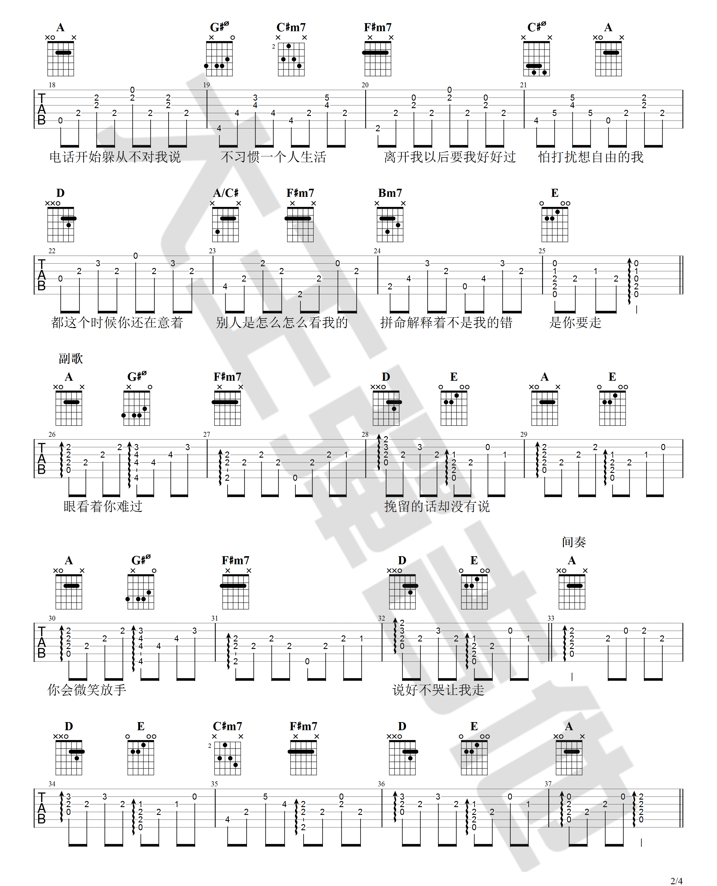 《誓言《说好不哭吉他谱》(A调)》内容来自于互联网,不能保证内容的准确性与完整性,仅供学习交流欣赏,请勿用于其它用途,内容版权归原作者及来源网站所有,如有侵犯到您的权益请来信告知,我们将及时删除。