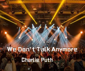 《Charlie Puth《We Don't Talk Anymore吉他谱》(E调)》内容来自于互联网,不能保证内容的准确性与完整性,仅供学习交流欣赏,请勿用于其它用途,内容版权归原作者及来源网站所有,如有侵犯到您的权益请来信告知,我们将及时删除。