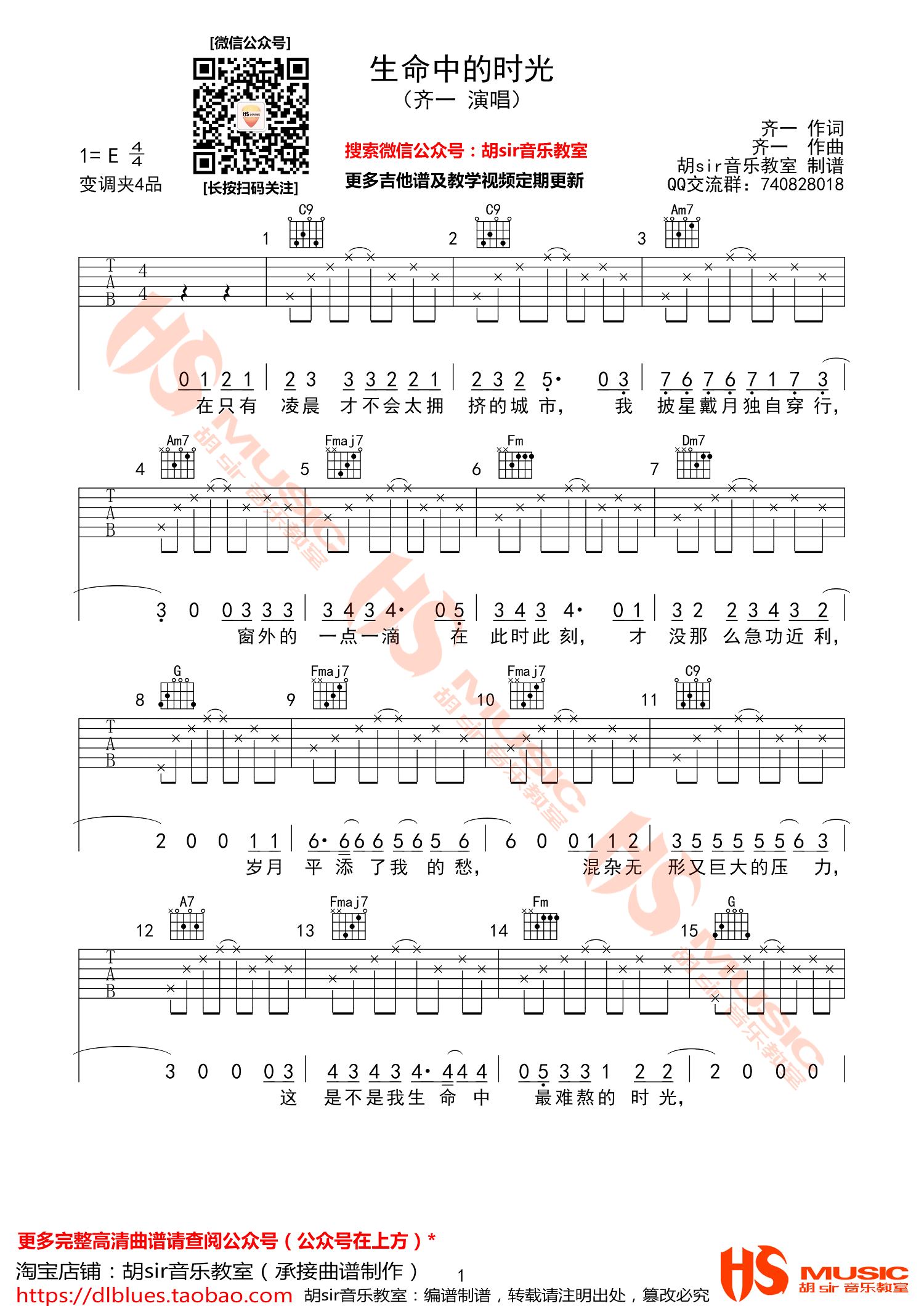 《生命中的时光》是由才华横溢的歌手齐一创作并演唱的一首歌曲,反映了生命中充满挫折与艰难的时刻。歌曲的吉他谱采用了C调指法原版编配,演唱时夹变调夹4品。这首歌曲的曲谱来自胡sir吉他工作室,以高清图片谱的形式分享。通过六线谱的展示,吉他手们可以轻松地学习和弹奏这