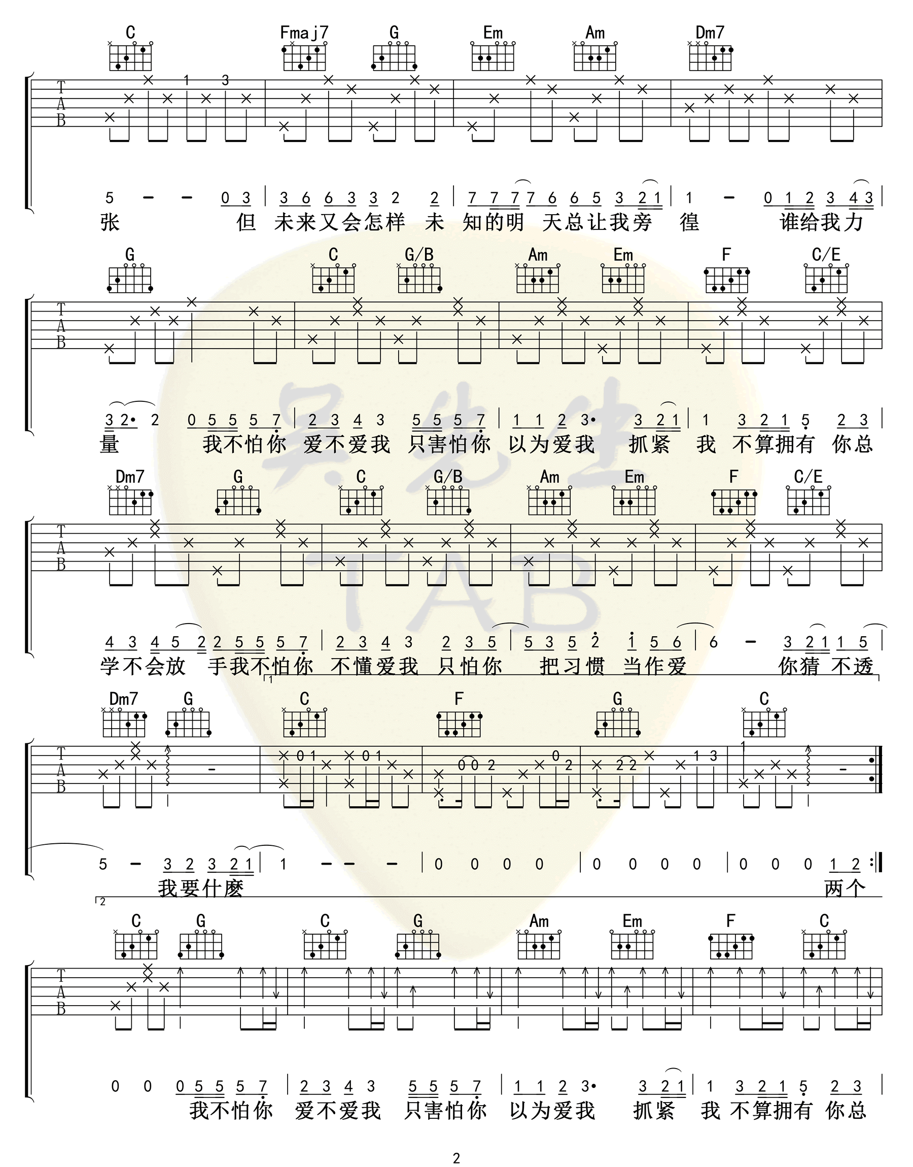 《林俊杰《这就是爱吗吉他谱》(C调)》内容来自于互联网,不能保证内容的准确性与完整性,仅供学习交流欣赏,请勿用于其它用途,内容版权归原作者及来源网站所有,如有侵犯到您的权益请来信告知,我们将及时删除。