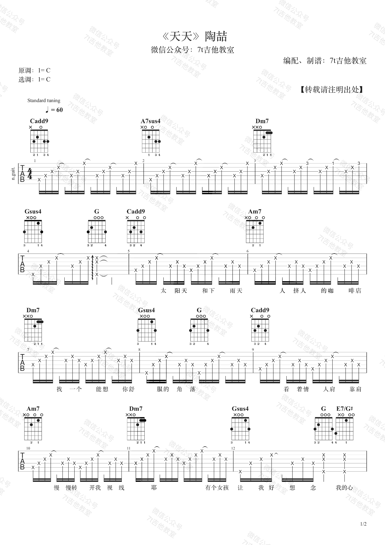 《陶喆《天天吉他谱》(C调)》内容来自于互联网,不能保证内容的准确性与完整性,仅供学习交流欣赏,请勿用于其它用途,内容版权归原作者及来源网站所有,如有侵犯到您的权益请来信告知,我们将及时删除。