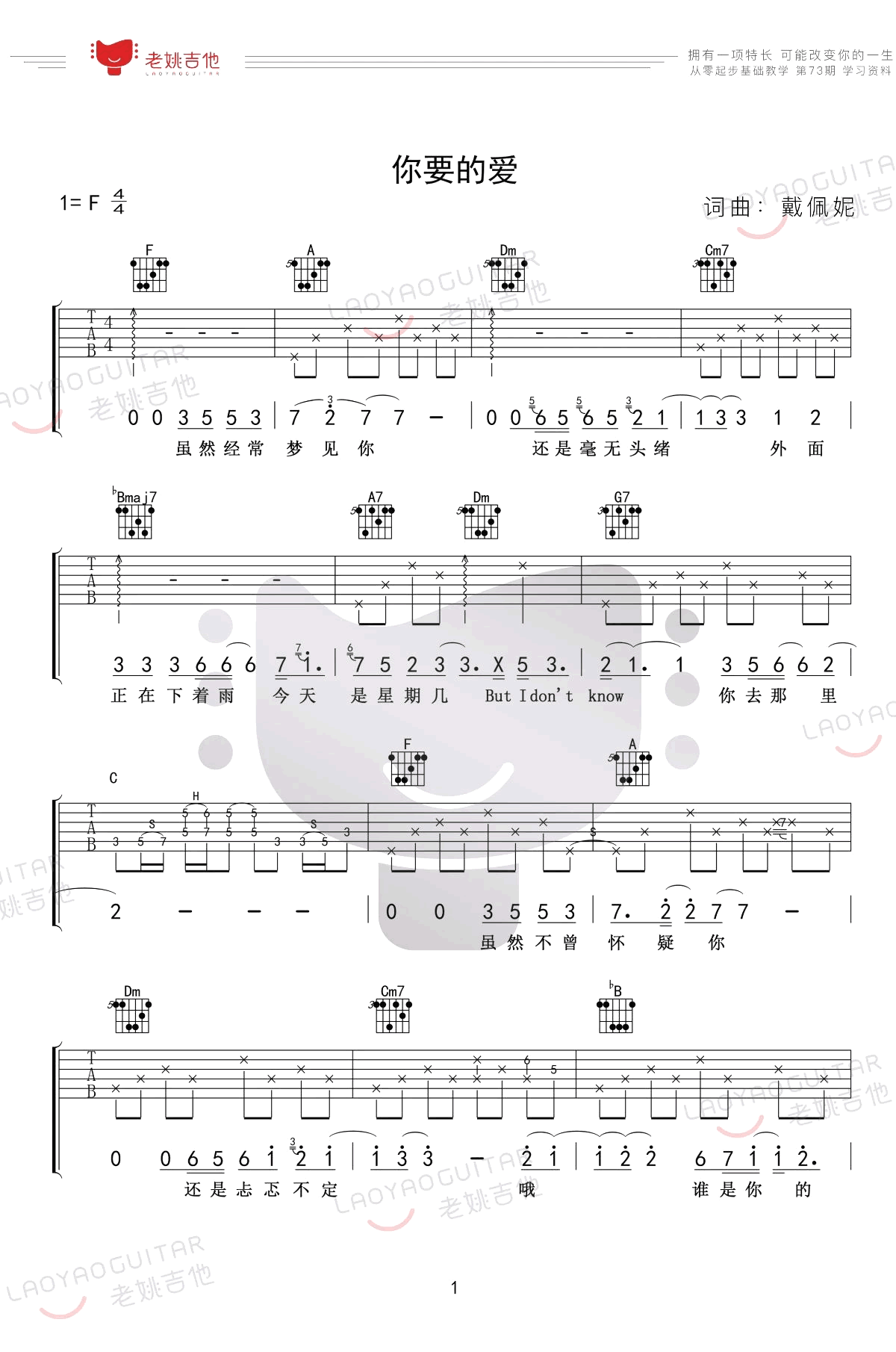 《戴佩妮《你要的爱吉他谱》》内容来自于互联网,不能保证内容的准确性与完整性,仅供学习交流欣赏,请勿用于其它用途,内容版权归原作者及来源网站所有,如有侵犯到您的权益请来信告知,我们将及时删除。