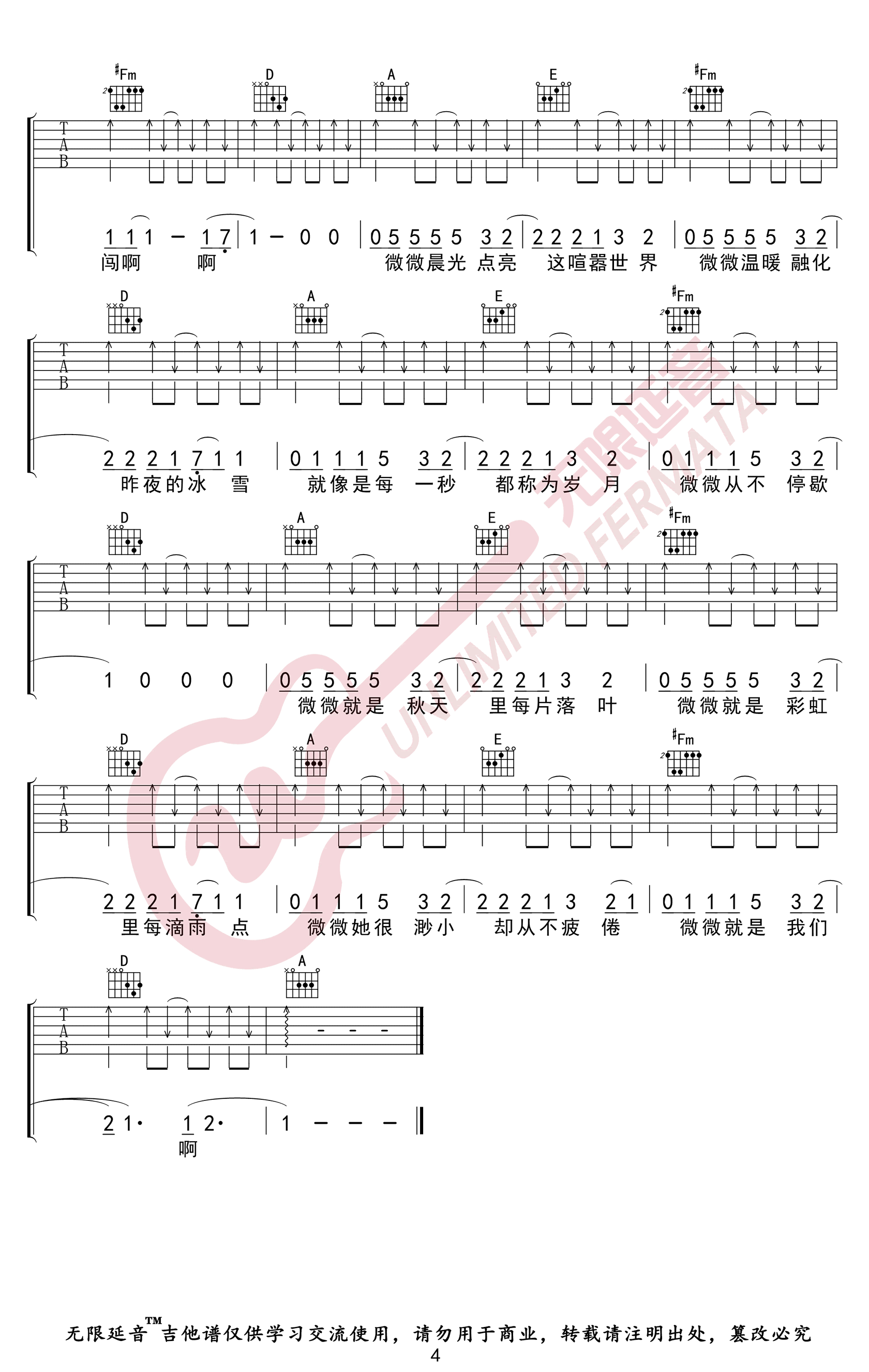 《傅如乔《微微吉他谱》(G调)》内容来自于互联网,不能保证内容的准确性与完整性,仅供学习交流欣赏,请勿用于其它用途,内容版权归原作者及来源网站所有,如有侵犯到您的权益请来信告知,我们将及时删除。