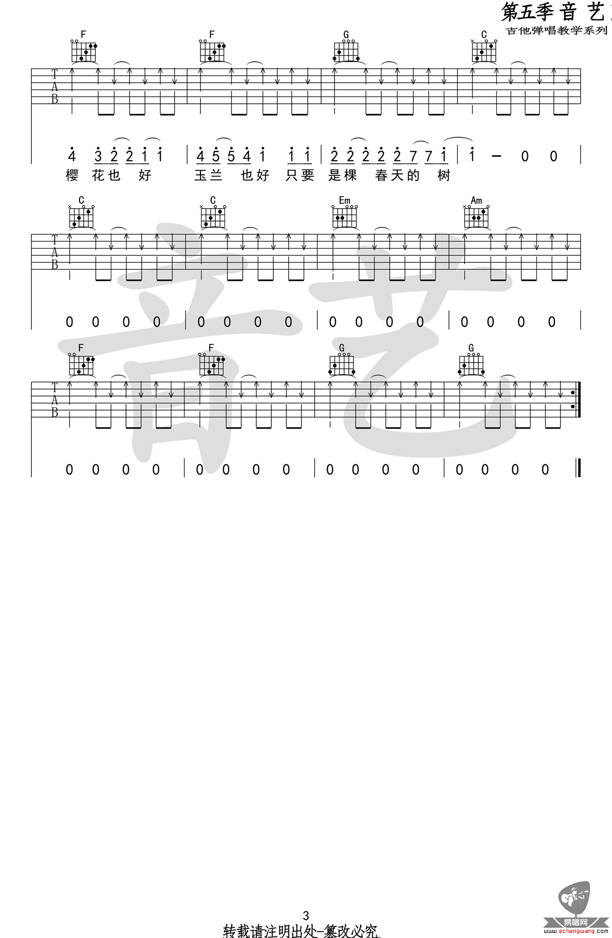 《谢春花《一棵会开花的树吉他谱》(C调)》内容来自于互联网,不能保证内容的准确性与完整性,仅供学习交流欣赏,请勿用于其它用途,内容版权归原作者及来源网站所有,如有侵犯到您的权益请来信告知,我们将及时删除。