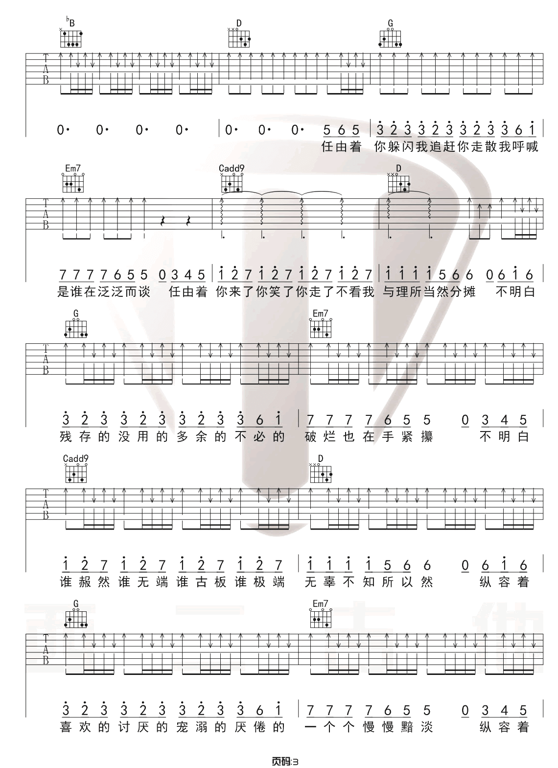 《陈粒《小半吉他谱》(G调)》内容来自于互联网,不能保证内容的准确性与完整性,仅供学习交流欣赏,请勿用于其它用途,内容版权归原作者及来源网站所有,如有侵犯到您的权益请来信告知,我们将及时删除。