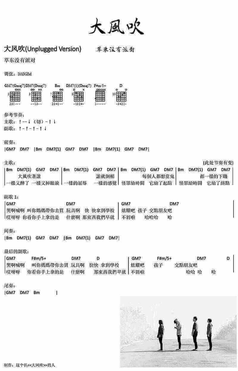 《草东没有派对《大风吹吉他谱》》内容来自于互联网,不能保证内容的准确性与完整性,仅供学习交流欣赏,请勿用于其它用途,内容版权归原作者及来源网站所有,如有侵犯到您的权益请来信告知,我们将及时删除。