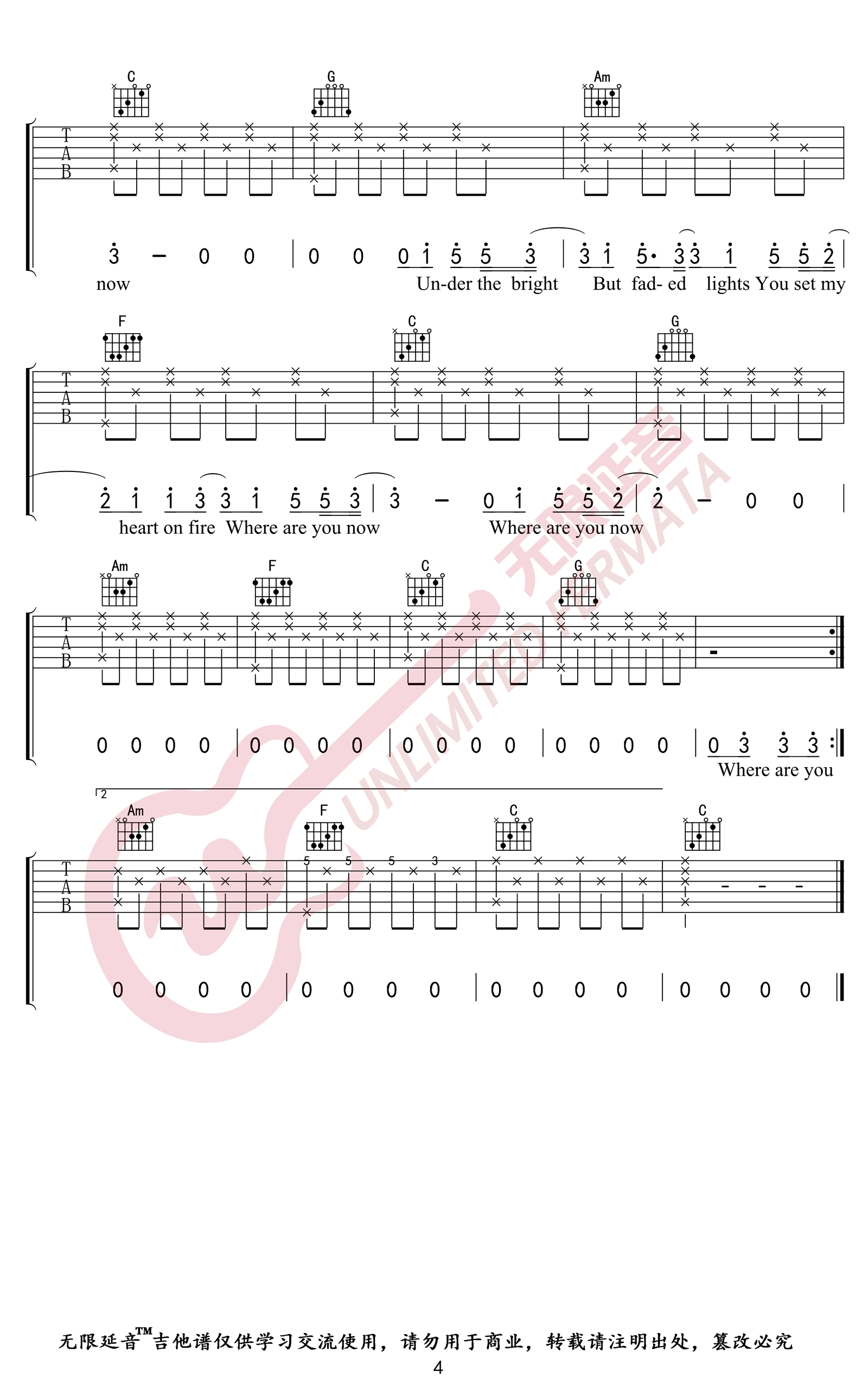 《艾兰·沃克《Faded吉他谱》(C调)》内容来自于互联网,不能保证内容的准确性与完整性,仅供学习交流欣赏,请勿用于其它用途,内容版权归原作者及来源网站所有,如有侵犯到您的权益请来信告知,我们将及时删除。