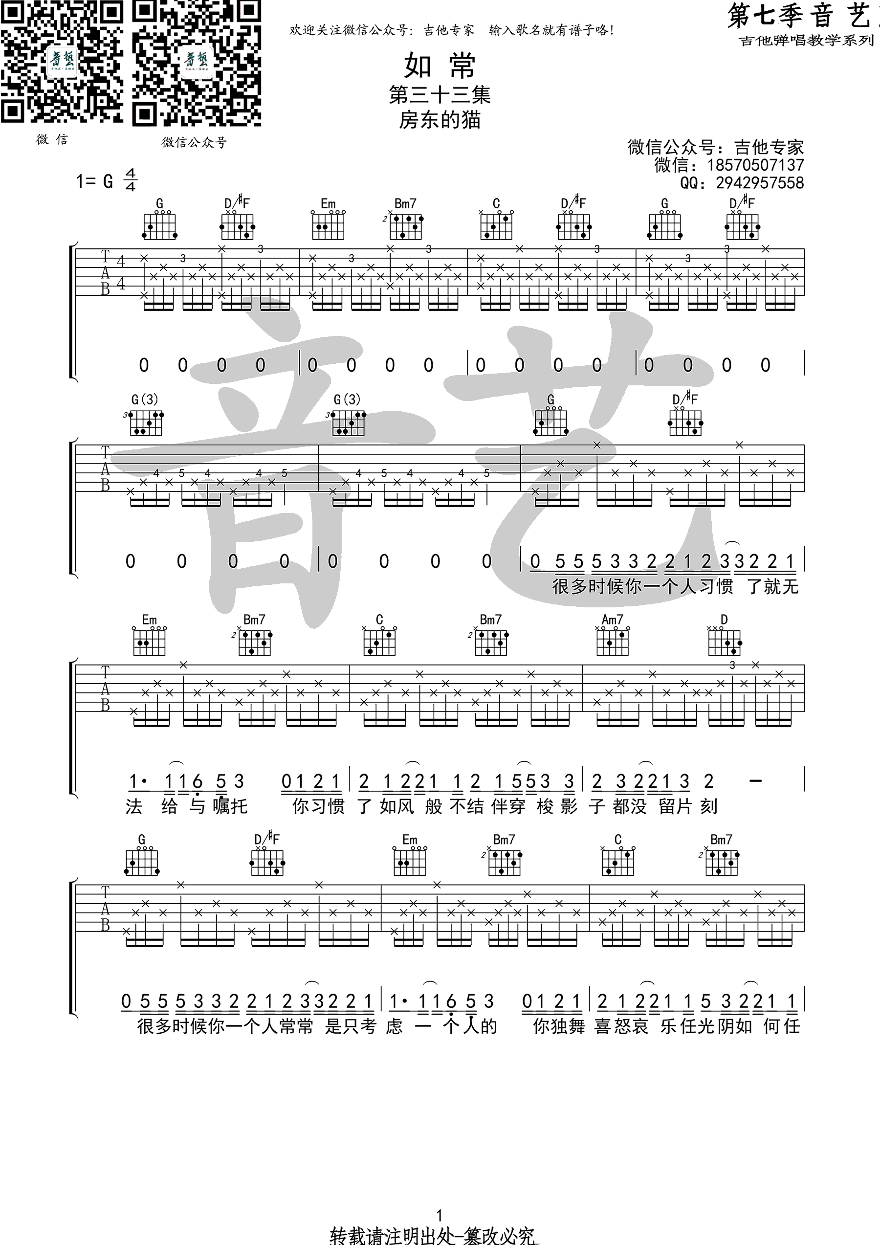 《房东的猫《如常吉他谱》(G调)》内容来自于互联网,不能保证内容的准确性与完整性,仅供学习交流欣赏,请勿用于其它用途,内容版权归原作者及来源网站所有,如有侵犯到您的权益请来信告知,我们将及时删除。