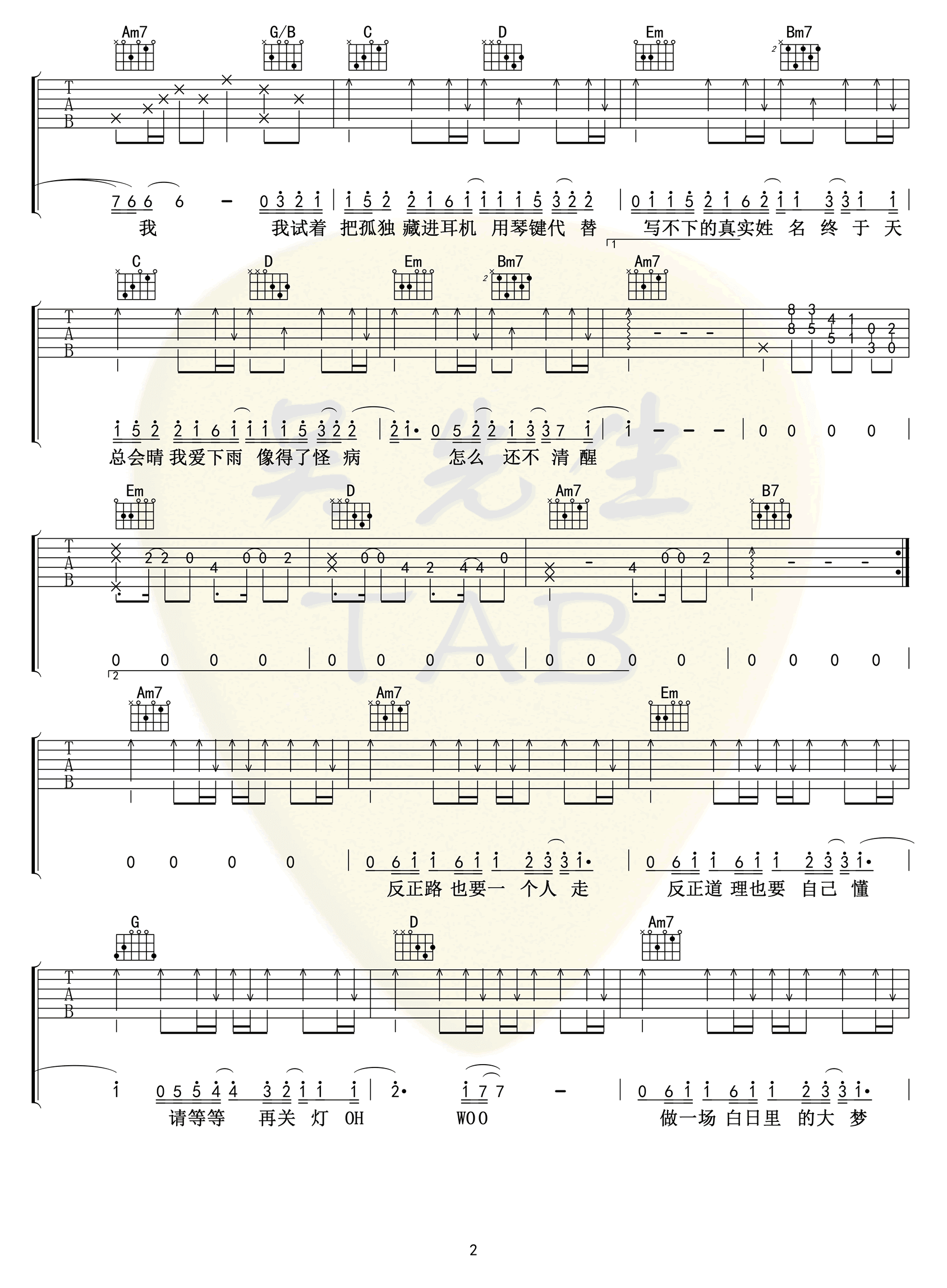 《黑夜问白天》是林俊杰演唱的一首触动灵魂的歌曲,描绘了每个人在心灵疲惫时感受到的空虚与真实。歌曲由吴先生扒谱制谱,以C调为基调,前奏运用生僻的F3和弦,却简便易按;主歌采用分解和弦,而副歌及后续则以扫弦节奏为主,简单易学。这首歌曲通过吉他谱的分享,以高清图片形