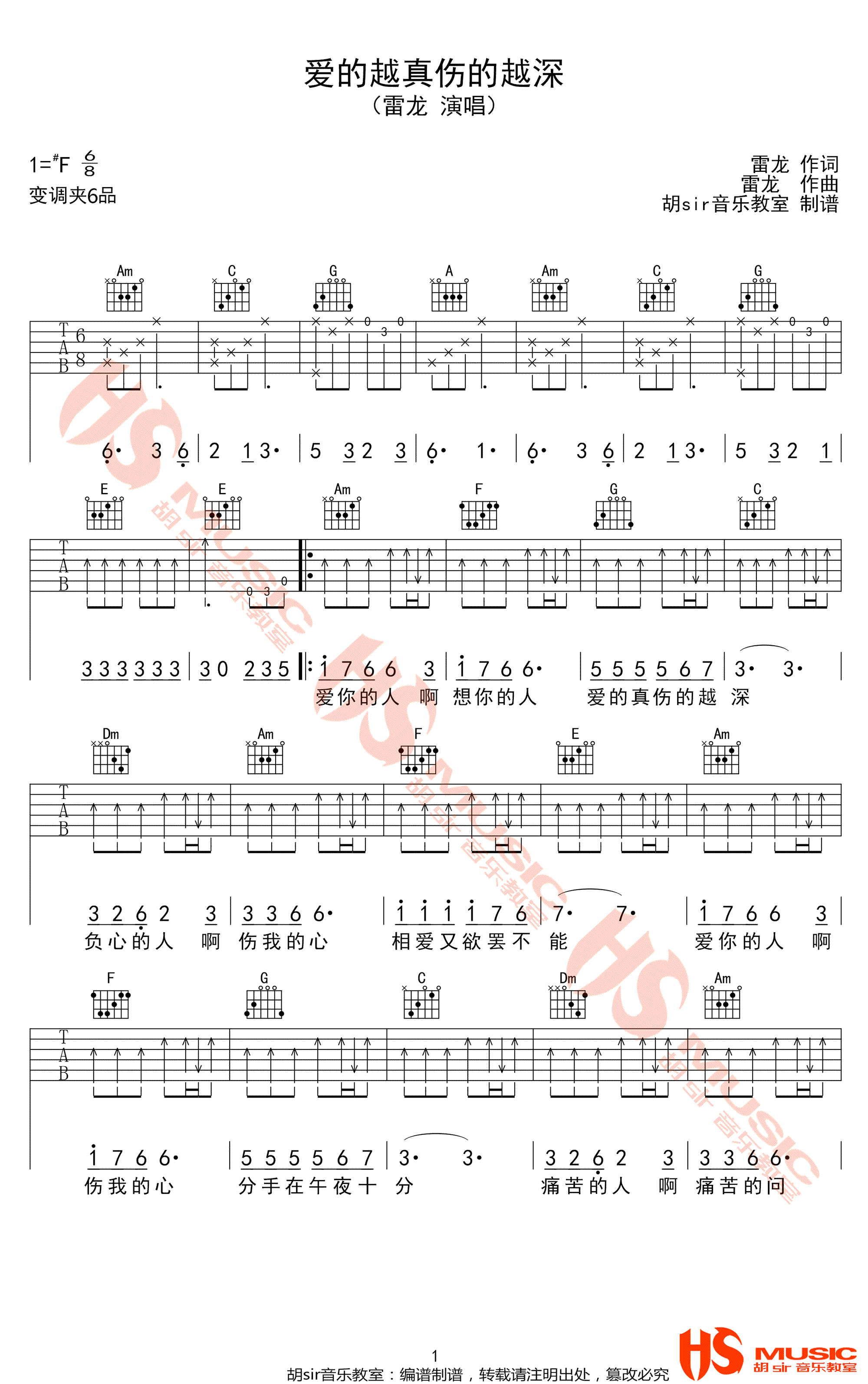 《爱的越真伤的越深》是原创型歌手雷龙的一首抒情之作。歌曲采用C调原版编配,以六线谱形式呈现。与其他歌曲不同,这是一首6/8拍的曲子,适宜演奏时夹变调夹6品。雷龙当年以《没有钱你会爱我吗》红遍大江南北,如今以这首歌再次触动人心。通过吉他谱,你可以体验到歌曲中真挚