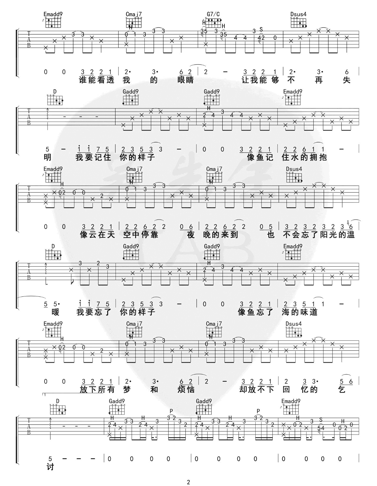 《王贰浪《像鱼吉他谱》(G调)》内容来自于互联网,不能保证内容的准确性与完整性,仅供学习交流欣赏,请勿用于其它用途,内容版权归原作者及来源网站所有,如有侵犯到您的权益请来信告知,我们将及时删除。