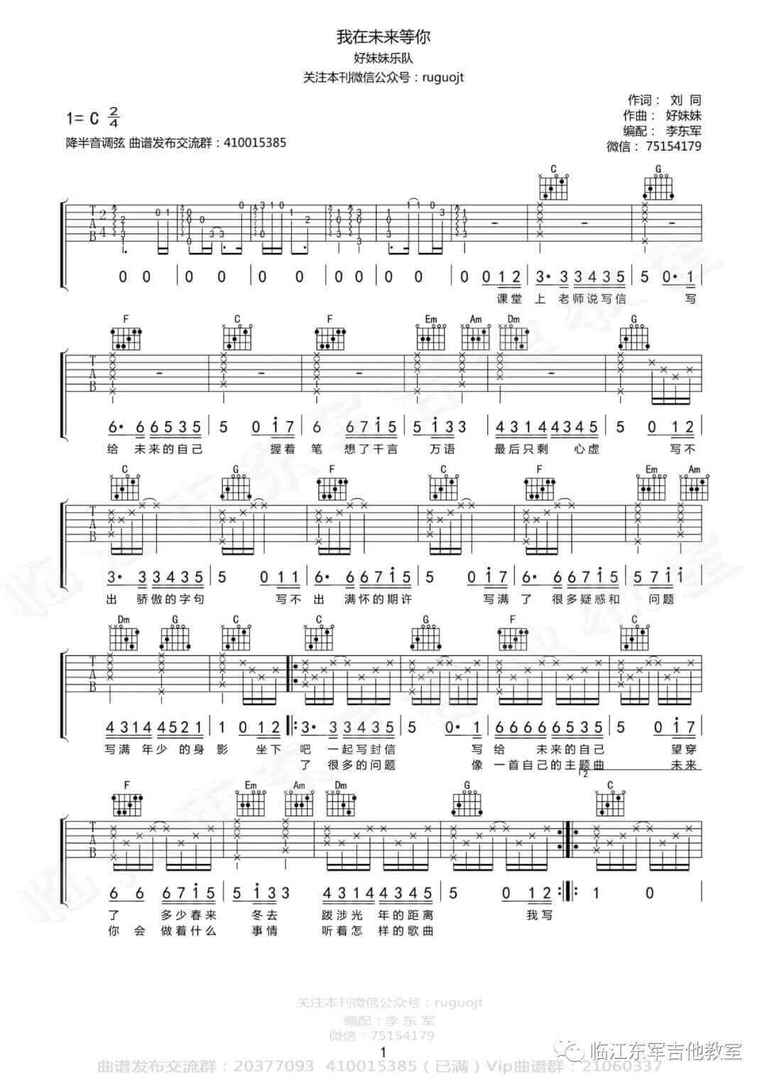 《好妹妹《我在未来等你吉他谱》(C调)》内容来自于互联网,不能保证内容的准确性与完整性,仅供学习交流欣赏,请勿用于其它用途,内容版权归原作者及来源网站所有,如有侵犯到您的权益请来信告知,我们将及时删除。