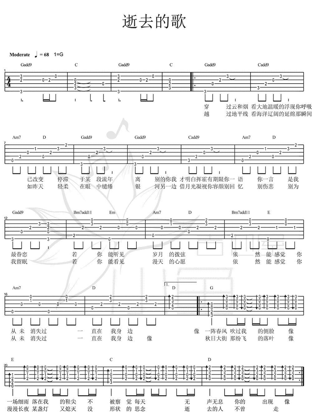 《阿肆《逝去的歌吉他谱》(G调)》内容来自于互联网,不能保证内容的准确性与完整性,仅供学习交流欣赏,请勿用于其它用途,内容版权归原作者及来源网站所有,如有侵犯到您的权益请来信告知,我们将及时删除。