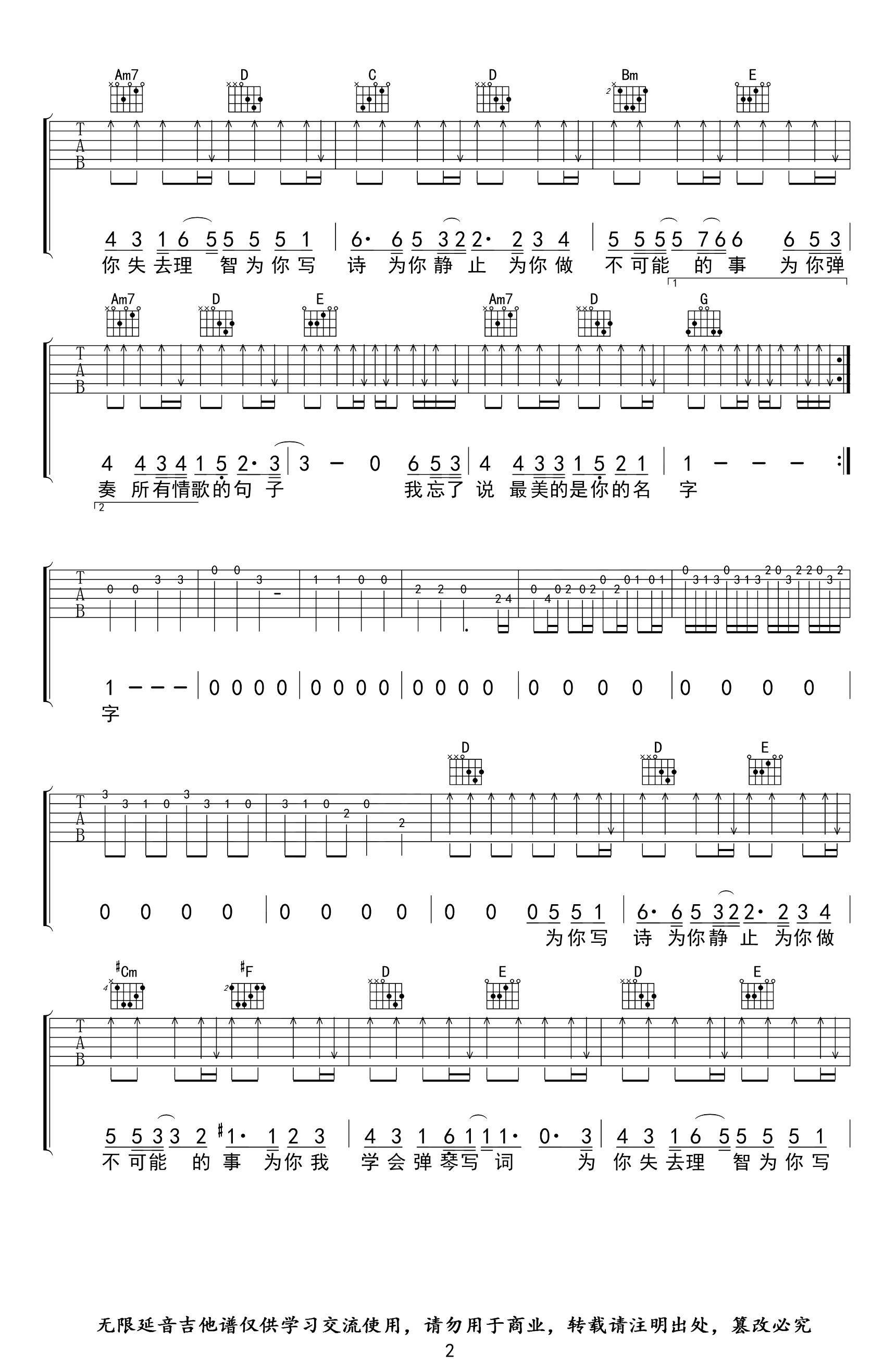 《吴克群《为你写诗吉他谱》(G调)》内容来自于互联网,不能保证内容的准确性与完整性,仅供学习交流欣赏,请勿用于其它用途,内容版权归原作者及来源网站所有,如有侵犯到您的权益请来信告知,我们将及时删除。
