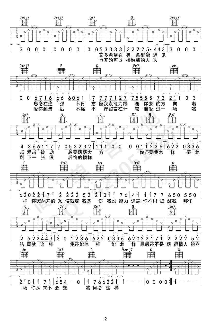《薛之谦《你还要我怎样吉他谱》(C调)》内容来自于互联网,不能保证内容的准确性与完整性,仅供学习交流欣赏,请勿用于其它用途,内容版权归原作者及来源网站所有,如有侵犯到您的权益请来信告知,我们将及时删除。
