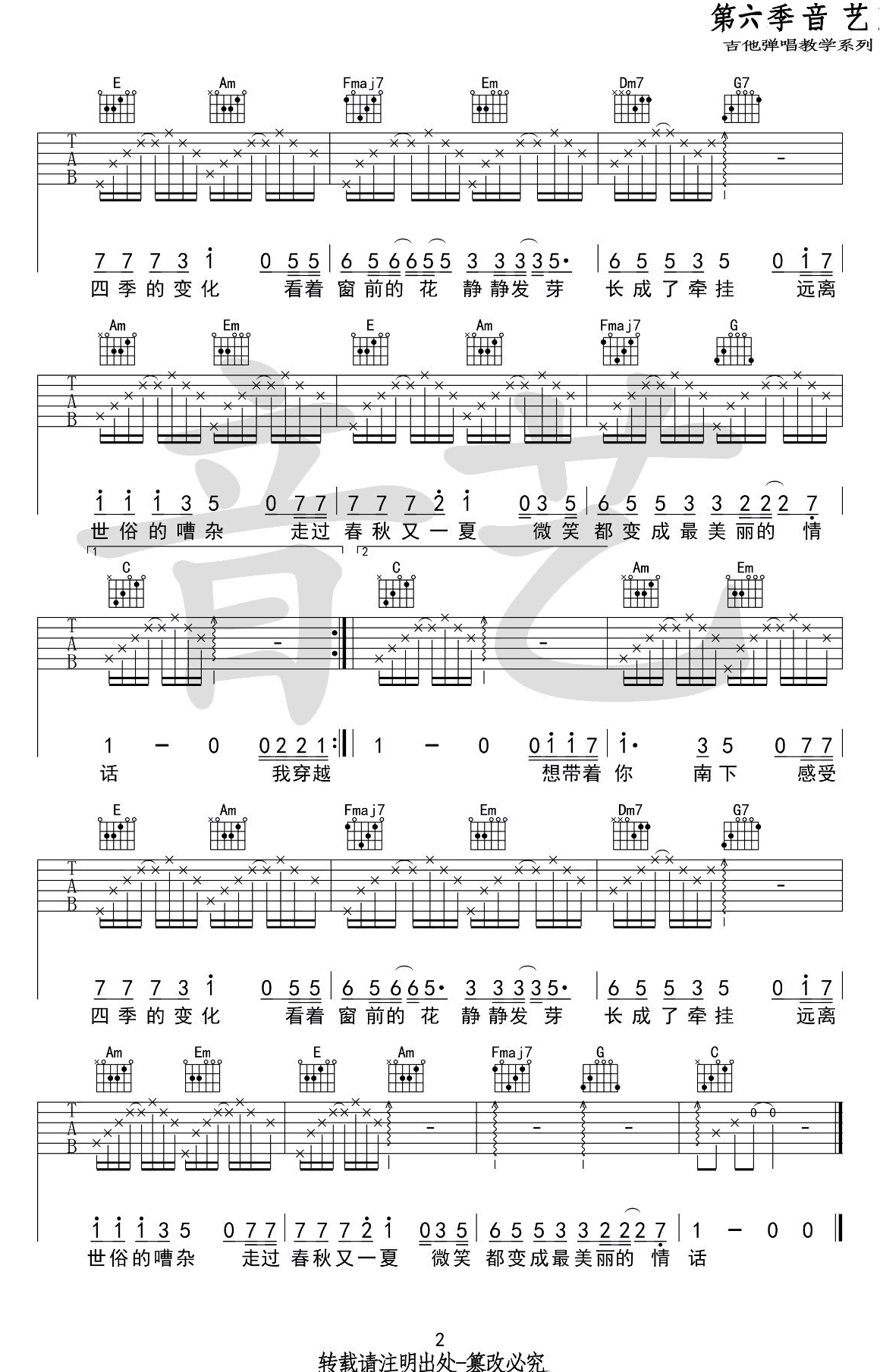 《徐海俏《南下吉他谱》(C调)》内容来自于互联网,不能保证内容的准确性与完整性,仅供学习交流欣赏,请勿用于其它用途,内容版权归原作者及来源网站所有,如有侵犯到您的权益请来信告知,我们将及时删除。