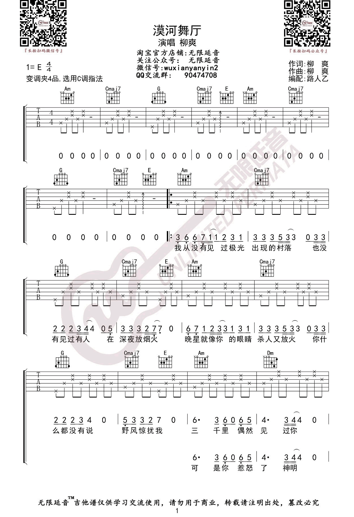 《柳爽《漠河舞厅吉他谱》》内容来自于互联网,不能保证内容的准确性与完整性,仅供学习交流欣赏,请勿用于其它用途,内容版权归原作者及来源网站所有,如有侵犯到您的权益请来信告知,我们将及时删除。