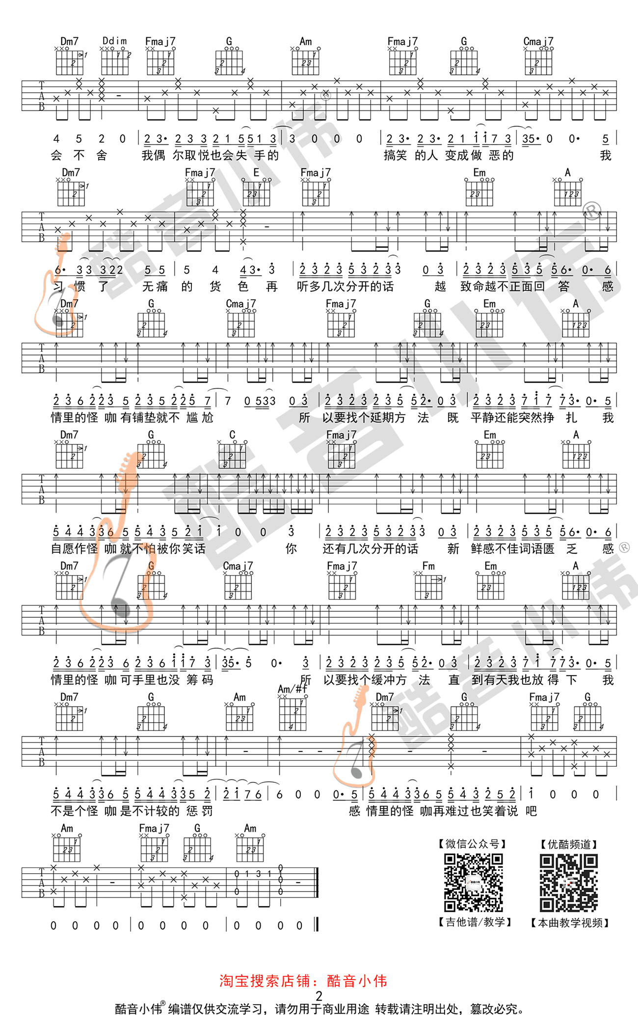 《薛之谦《怪咖吉他谱》(C调)》内容来自于互联网,不能保证内容的准确性与完整性,仅供学习交流欣赏,请勿用于其它用途,内容版权归原作者及来源网站所有,如有侵犯到您的权益请来信告知,我们将及时删除。
