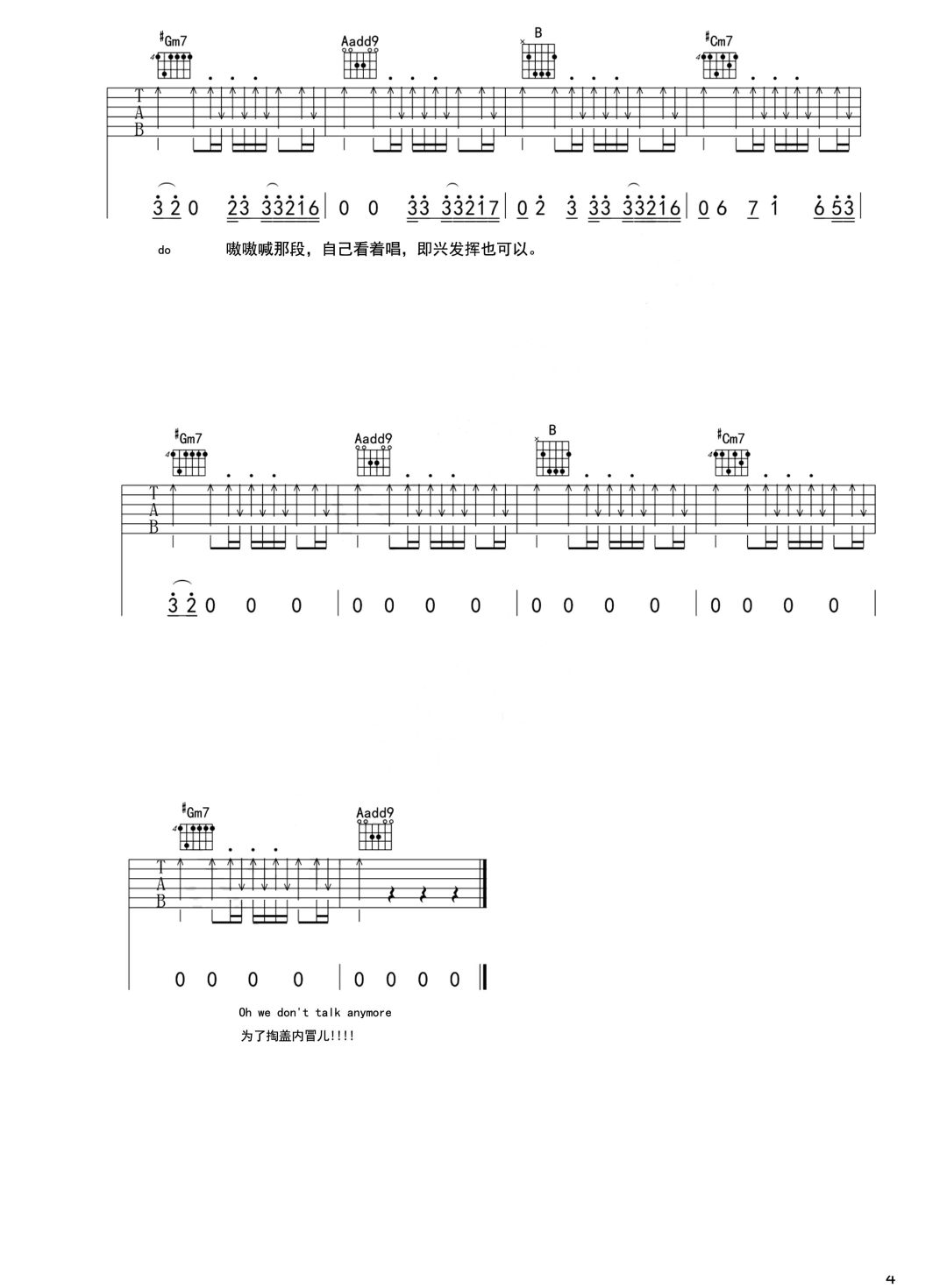 《Charlie Puth《We Don't Talk Anymore吉他谱》(E调)》内容来自于互联网,不能保证内容的准确性与完整性,仅供学习交流欣赏,请勿用于其它用途,内容版权归原作者及来源网站所有,如有侵犯到您的权益请来信告知,我们将及时删除。