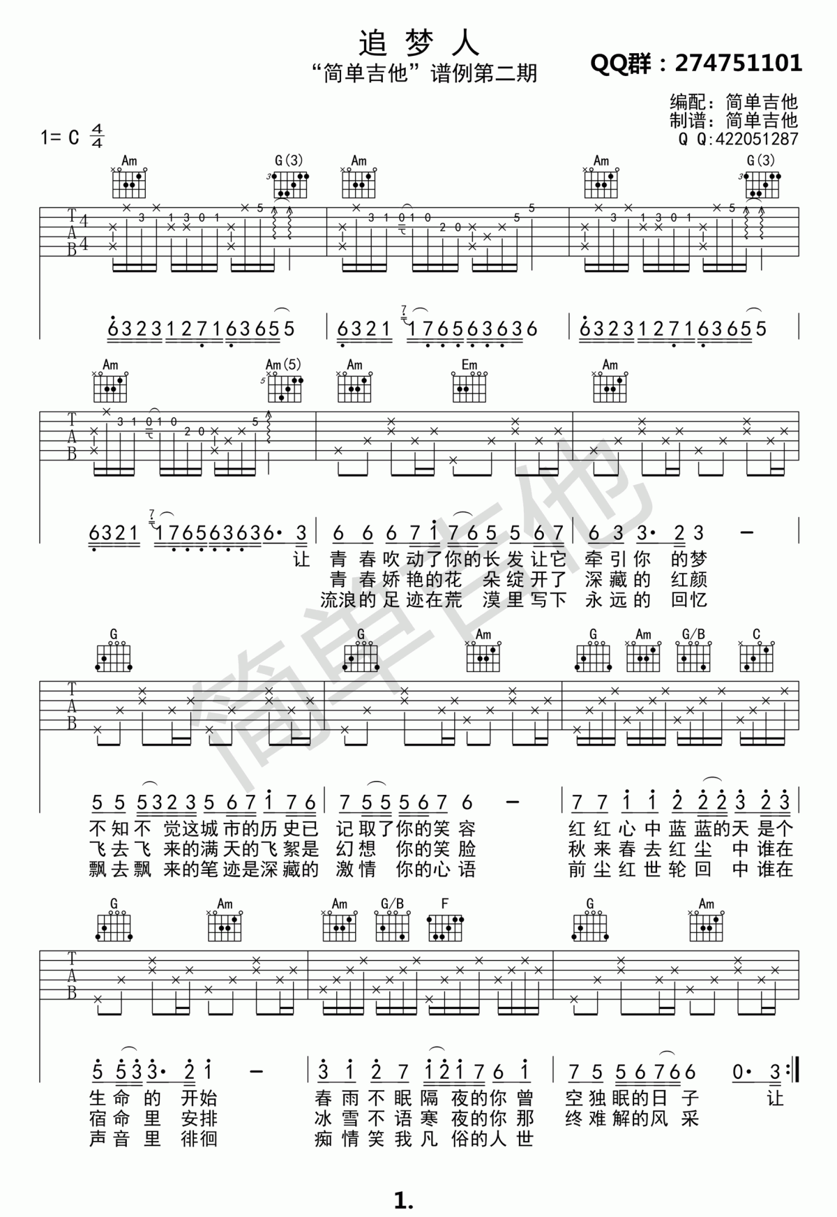 《凤飞飞《追梦人吉他谱》(C调)》内容来自于互联网,不能保证内容的准确性与完整性,仅供学习交流欣赏,请勿用于其它用途,内容版权归原作者及来源网站所有,如有侵犯到您的权益请来信告知,我们将及时删除。