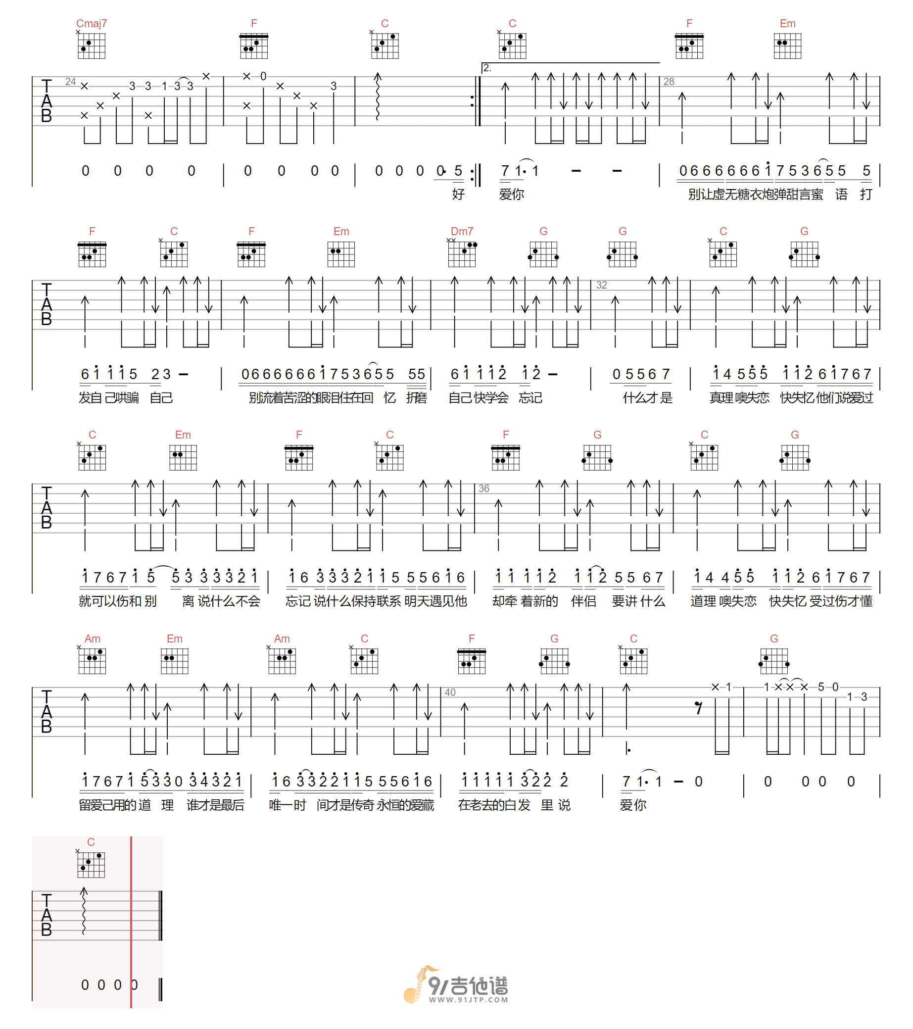 《刘崇健《失忆吉他谱》(C调)》内容来自于互联网,不能保证内容的准确性与完整性,仅供学习交流欣赏,请勿用于其它用途,内容版权归原作者及来源网站所有,如有侵犯到您的权益请来信告知,我们将及时删除。