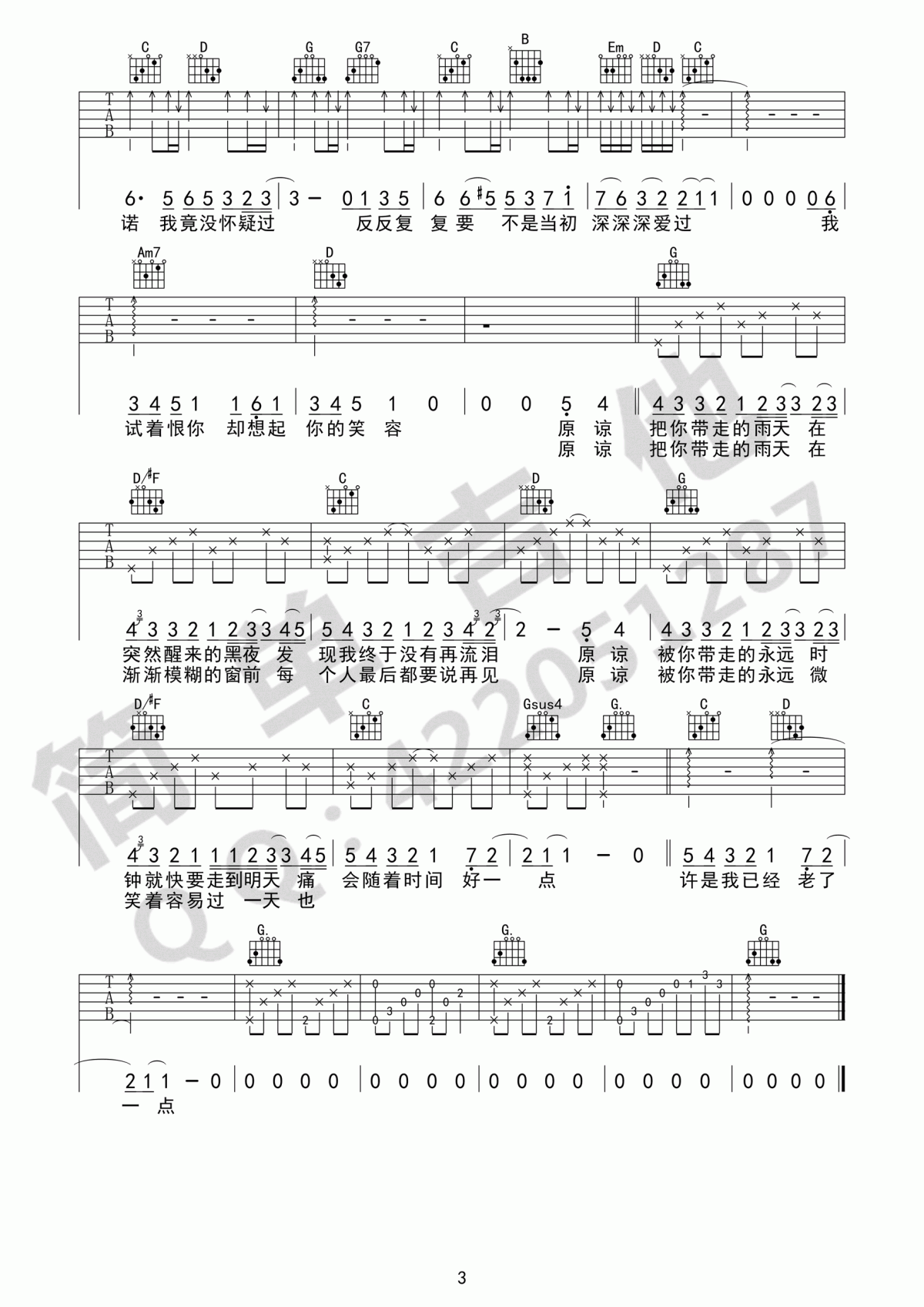 《张玉华《原谅吉他谱》(C调)》内容来自于互联网,不能保证内容的准确性与完整性,仅供学习交流欣赏,请勿用于其它用途,内容版权归原作者及来源网站所有,如有侵犯到您的权益请来信告知,我们将及时删除。